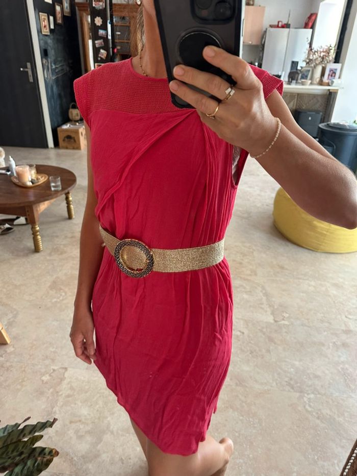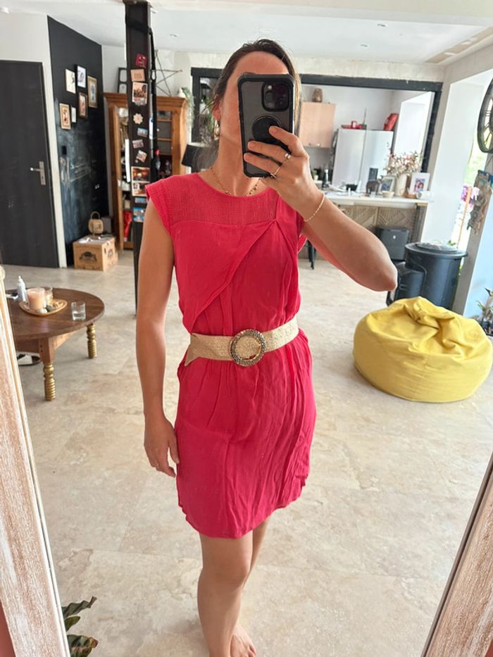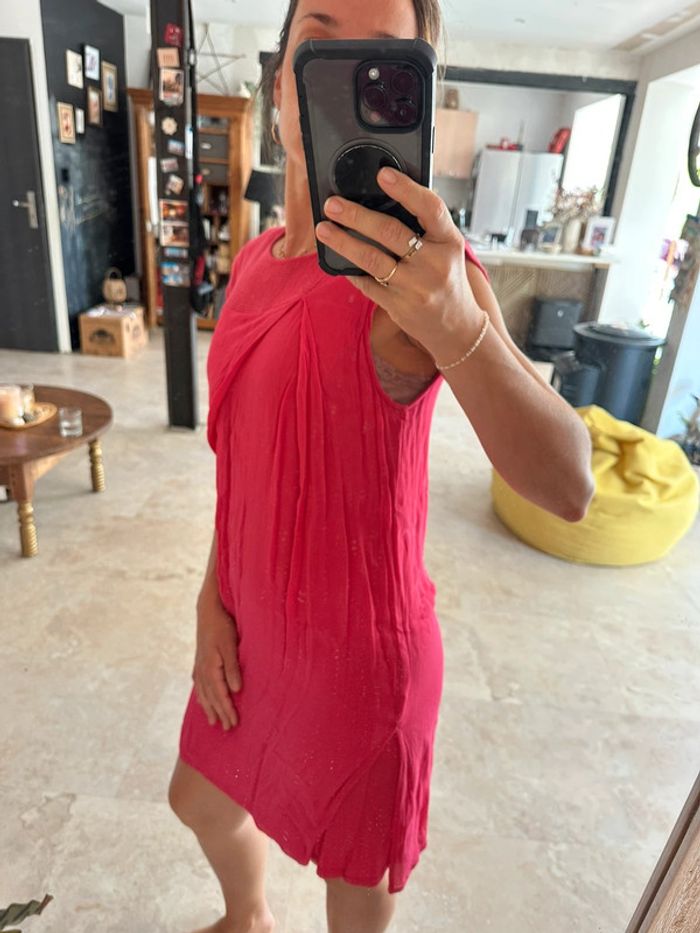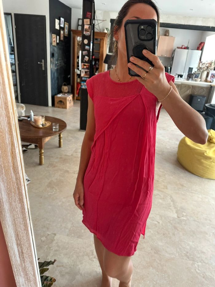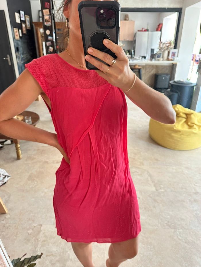 Belle robe asymétrique rose framboise Coupe originale Peu portée
