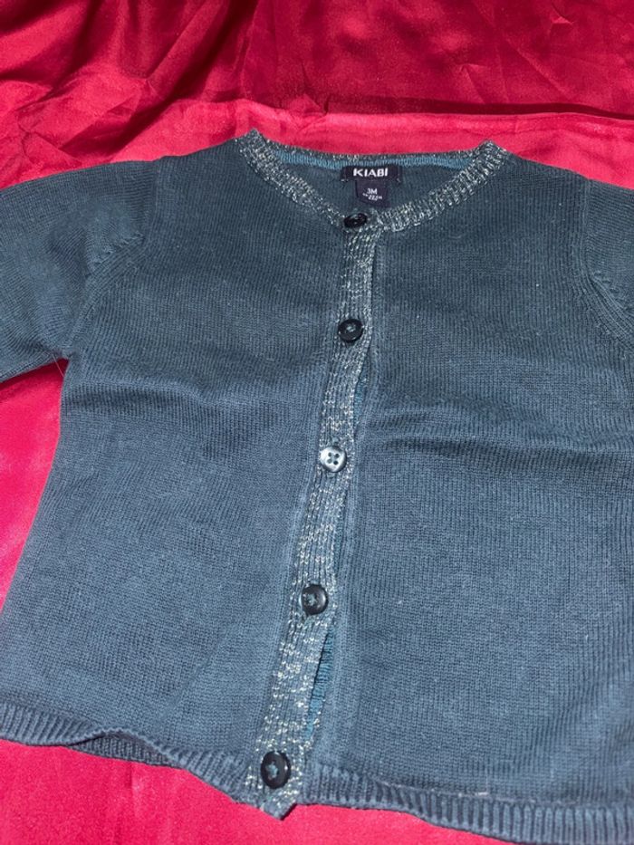 Gilet bébé fille • 3 mois • Kiabi • bon état Vert avec bordures doré #fahlyaechange #fahlyavetementbébé #giletkiabi3moisfille #kiabibebefille