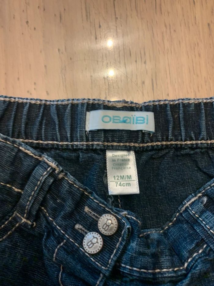 Le short est en denim bleu avec une coupe classique et deux poches à l'avant. 👕 La taille est élastiquée pour plus de confort. Les coutures sont apparentes, ajoutant une touche de style au design. Le logo Obaïbi est visible sur l'étiquette intérieure. 👖 Deux petits boutons à l'avant apportent une finition élégante.