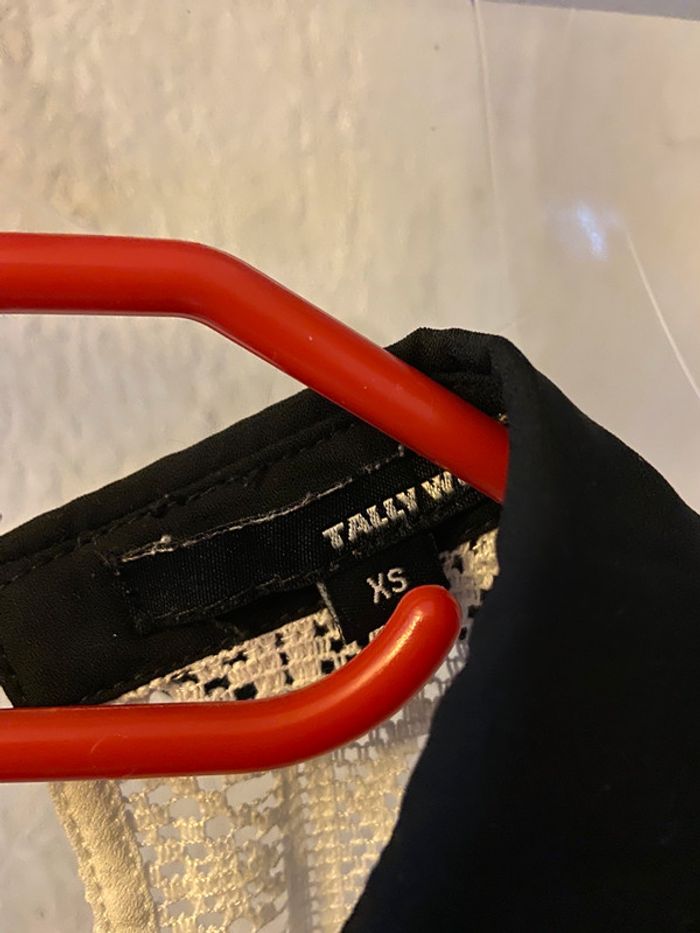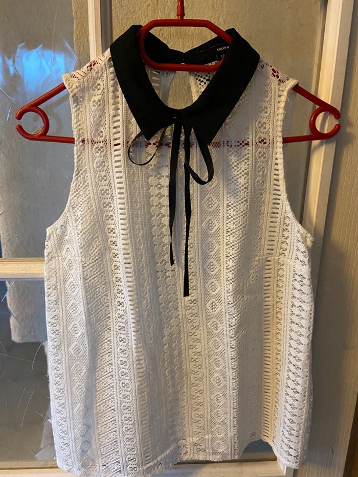 Chemisier dentelle blanc col noir avec liens à nouer noir Tally Weijl taille XS très bon état