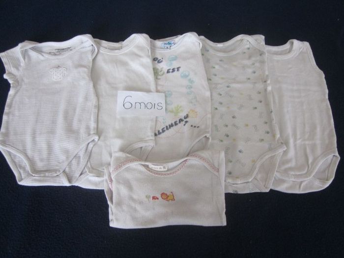6m, 5 bodies mc/sans manche + 6ème offert (tâche), orchestra, grain de blé, kiabi, petit béguin