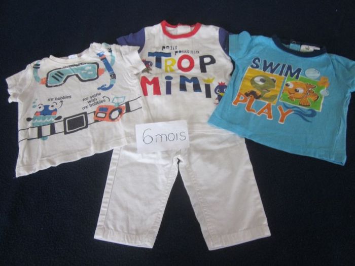 6m, pantalon + 3 hauts mc, disney, c&a, tissaia
