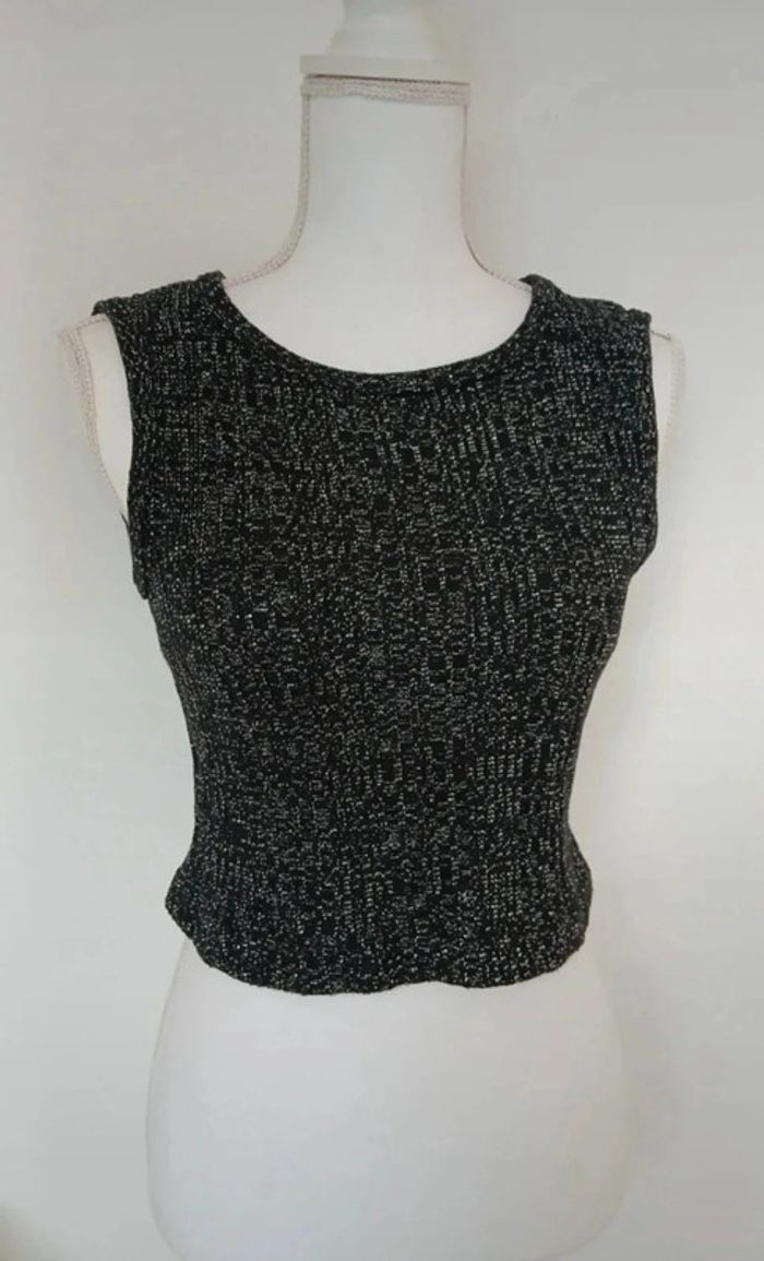 Top court sans manches, fil argenté 8% metalic, Boyco Taille S 46% coton et acrylique #inesines22taille36
