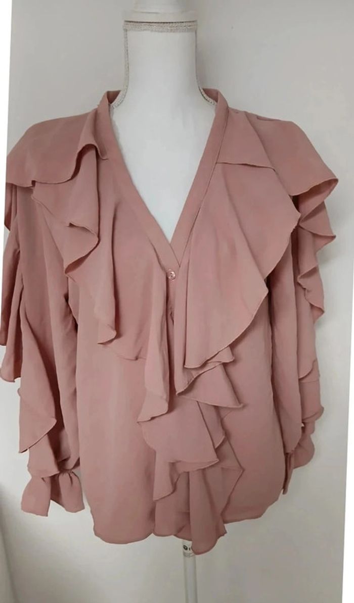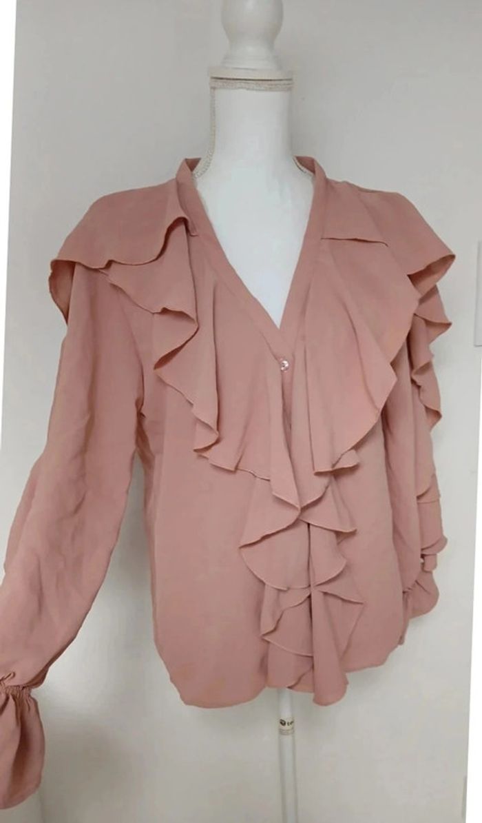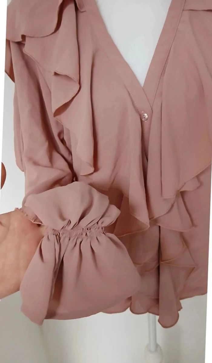 Chemisier avec volants, neuf avec étiquette, rose nude Col V, taille 36 #inesines22taille36