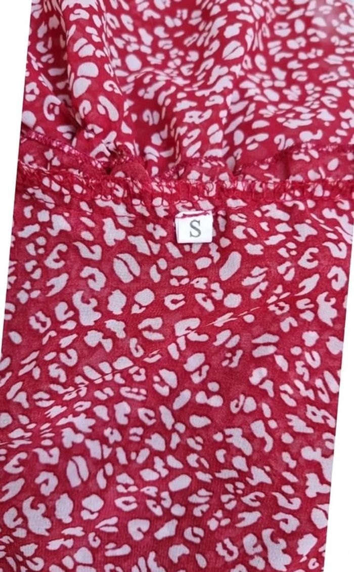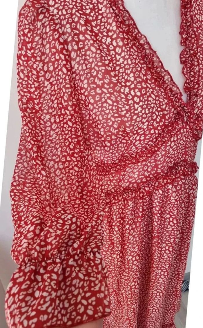 Robe imprimé tacheté, beau décolleté V, manches longues en transparence puis resserré au poignet La coupe est cintrée en haut et fluide sur le bas qui est doublée Taille S, neuve #inesines22taille36
