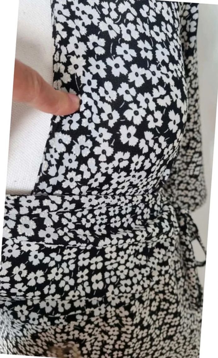 Robe printanière, cache coeur col V, manches 3 quart, neuve juste lavée Motifs fleurs en relief Tissu stretch Taille S Payee 22,99e #inesines22taille36