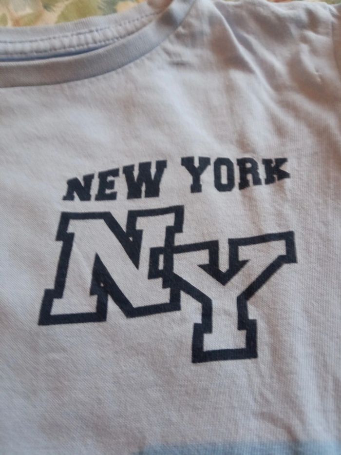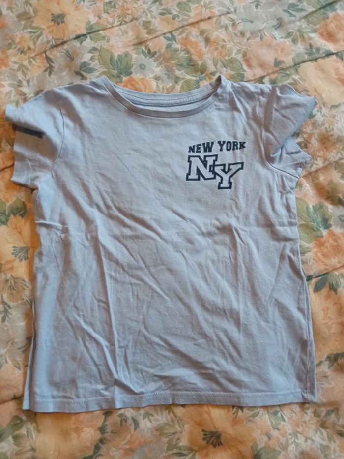 T-shirt manches courtes bleu ciel motif New York de chez TEX en 4/5 ans. Peut porter en très bon état. N'hésitez pas à faire le tour du dressing il est trié et les réductions sont activées. #aurelie6251garcon5ans #aurelie6251garcon4ans