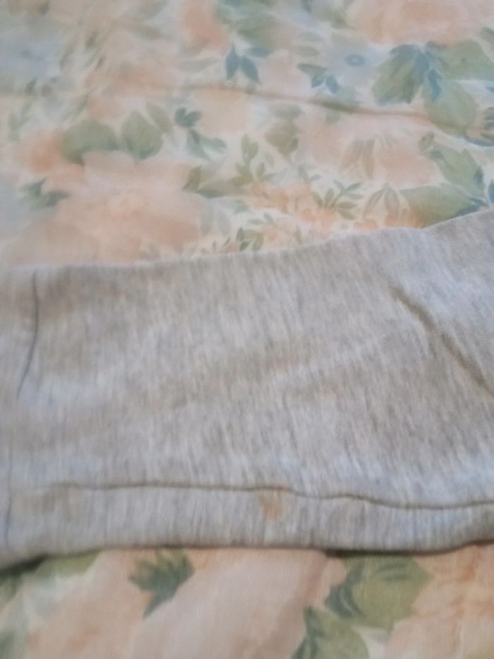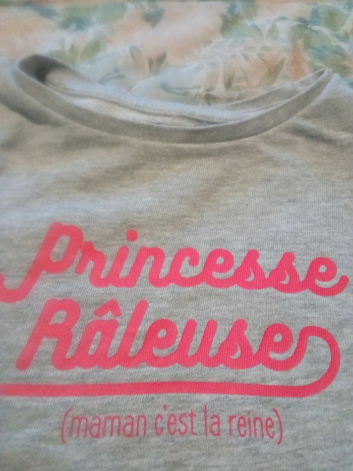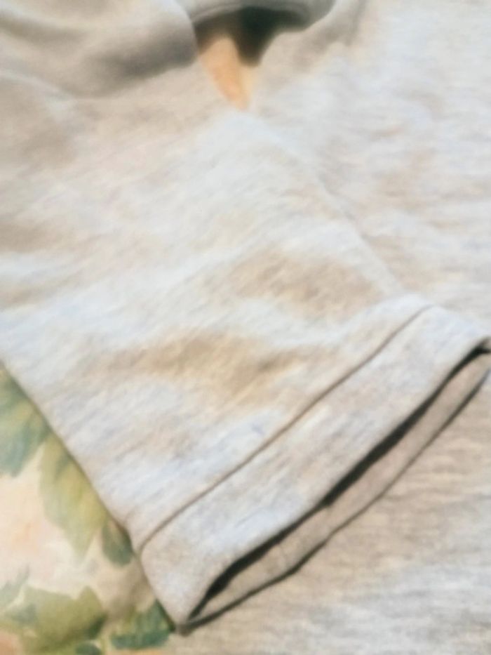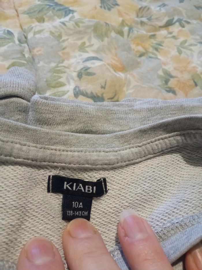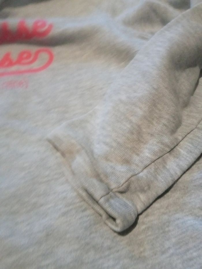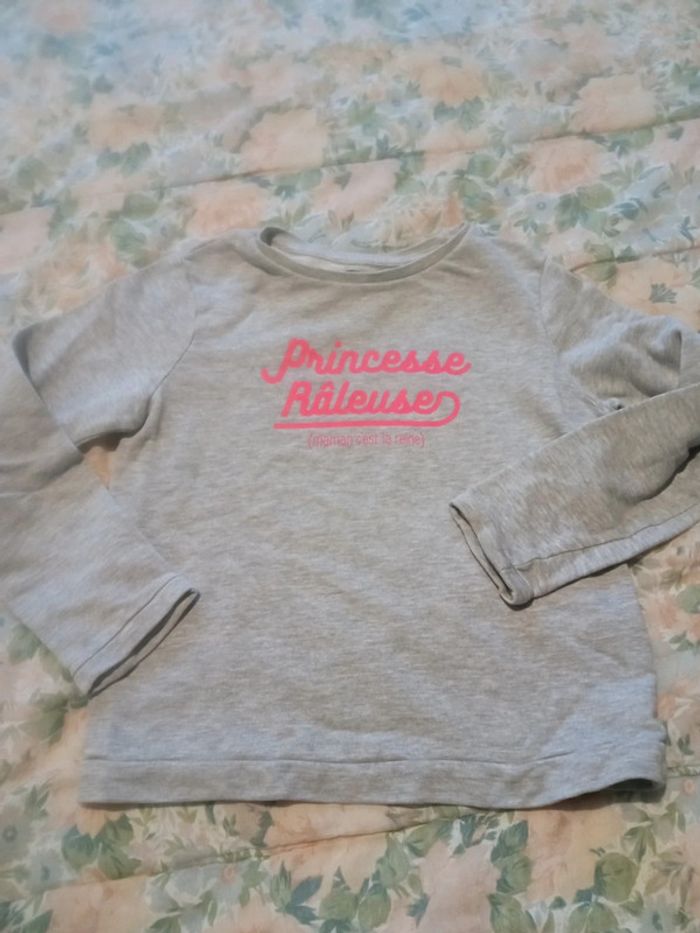 Sweat gris clair de chez Kiabi en 10 ans. Inscription nickel. Bout des manches pas taché mais pas nickel non plus + une tâche sur la manche #aurelie6251fille10ans