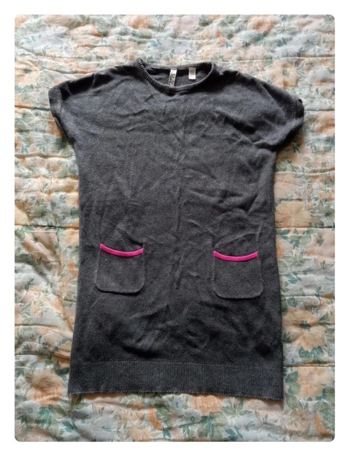 Tunique longue ou robe très courte de chez Okaïdi Okaïdi grise anthracite avec touche de rose en 10 ans. Peux porté mais quelques bouloches #aurelie6251fille10ans