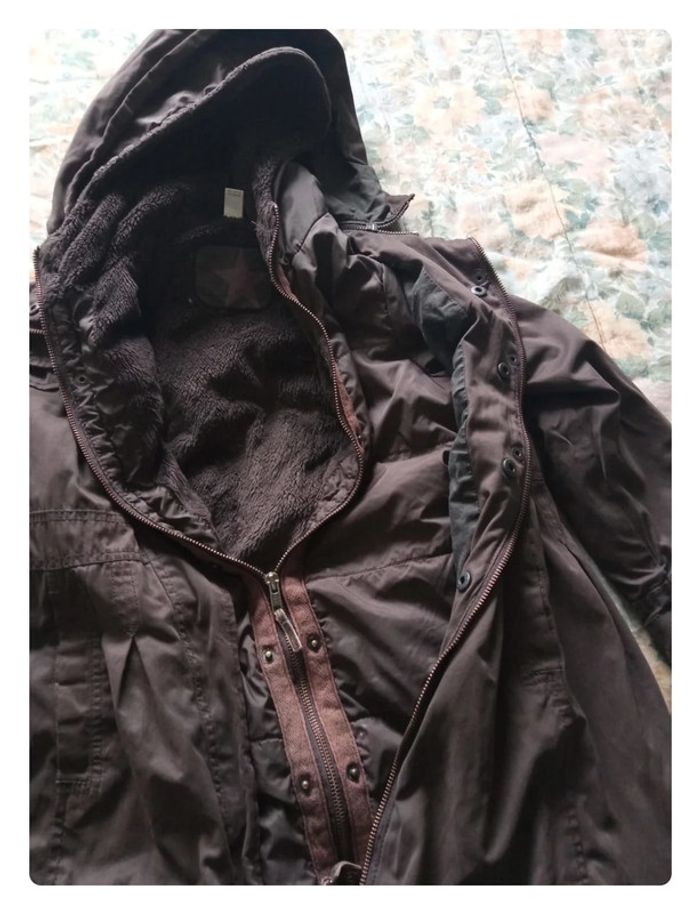 Manteau long marron de marque Okaïdi en 8ans. Manteau 2 en 1, la doublure ce retire entièrement, les 2 partie peuvent être porté séparément ou ensemble, Sur le manteau principal la capuche est amovible. En très bon état général, les fermetures et boutons nickel, par contre un poignet a été recousu. #aurelie6251fille8ans
