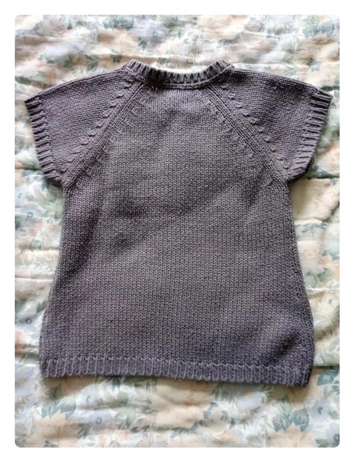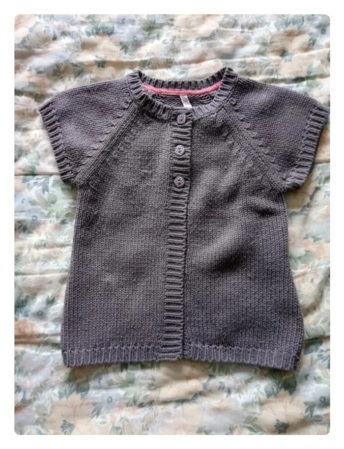 Gilet manche courte de chez Gémo, dans les tons gris/taupe en 8 ans. Bien porter un peu bouloché et 1 ou 2 fils légèrement tirer voir photos. #aurelie6251fille8ans