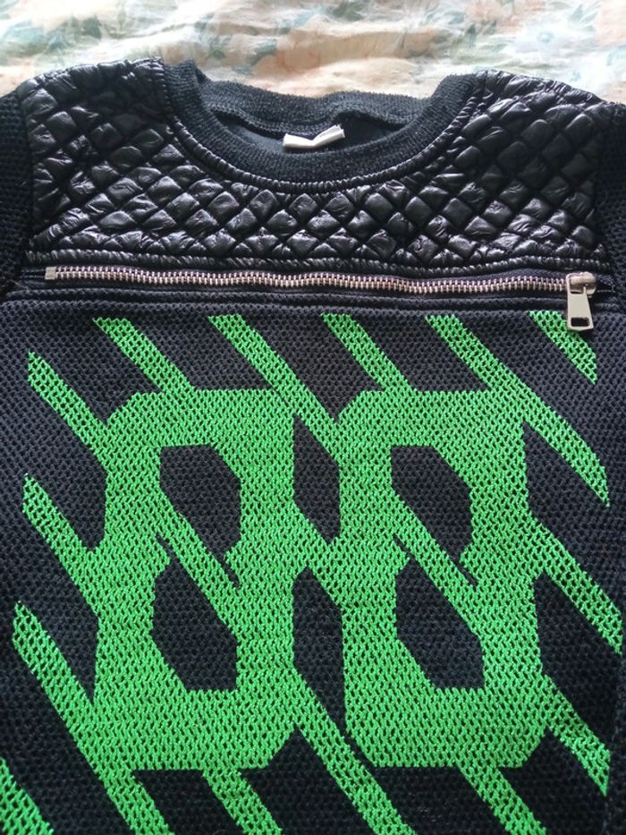 Pull noir et vert, multi matière, sans marque particulière en 6 ans. Bien porter, encore en bon état général, pas de défaut. #aurelie6251garcons6ans