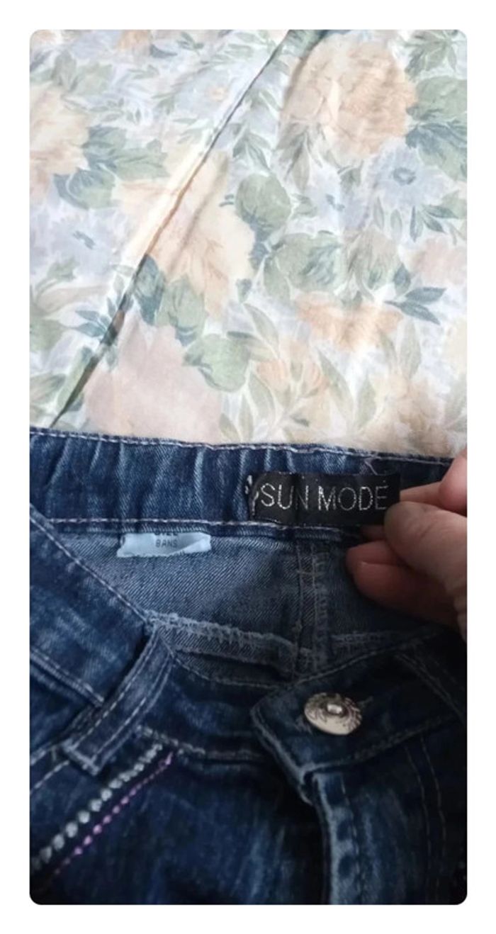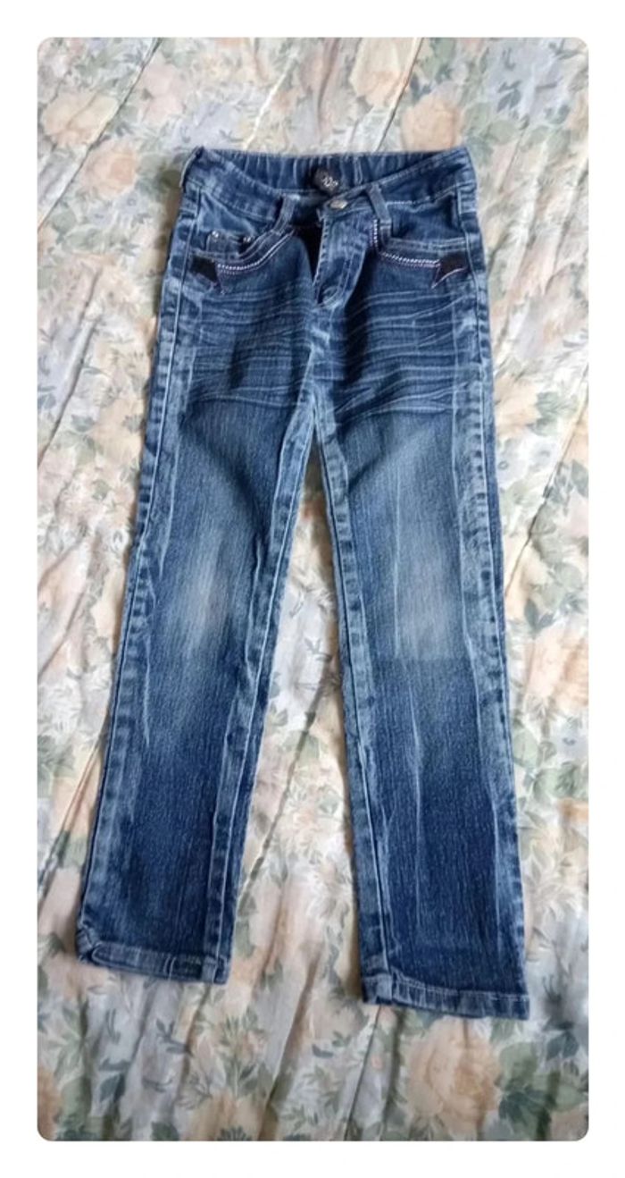 Jolie jeans effet délavé avec paillettes au niveau des poches, très peu porté, L'étiquette de marque est décousue En 8 ans #aurelie6251fille8ans