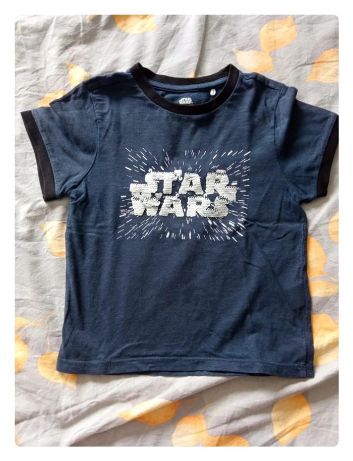 Tee-shirt manches courtes bleu marine et noir, motif à paillettes argentées réversible. De chez Orchestra, Porté 1ou 2 fois.... #aurelie6251garcon4ans
