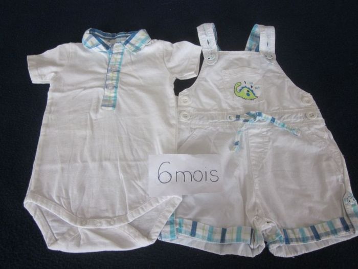 6m, ensemble 2 pièces : salopette courte + body polo mc, in extenso