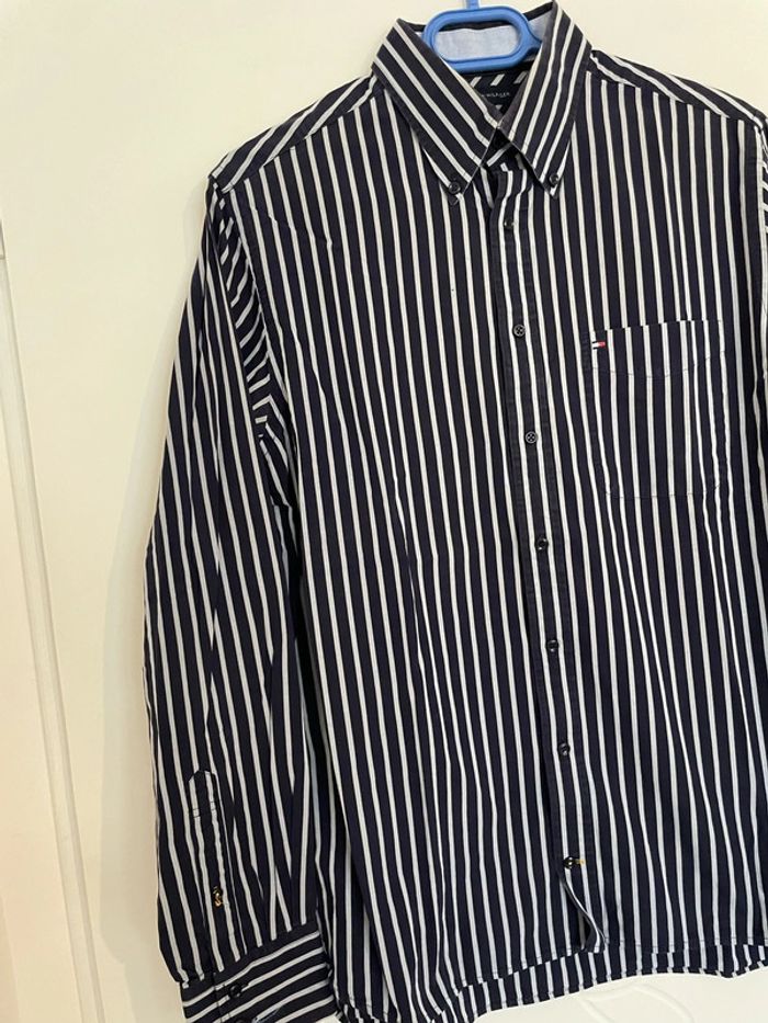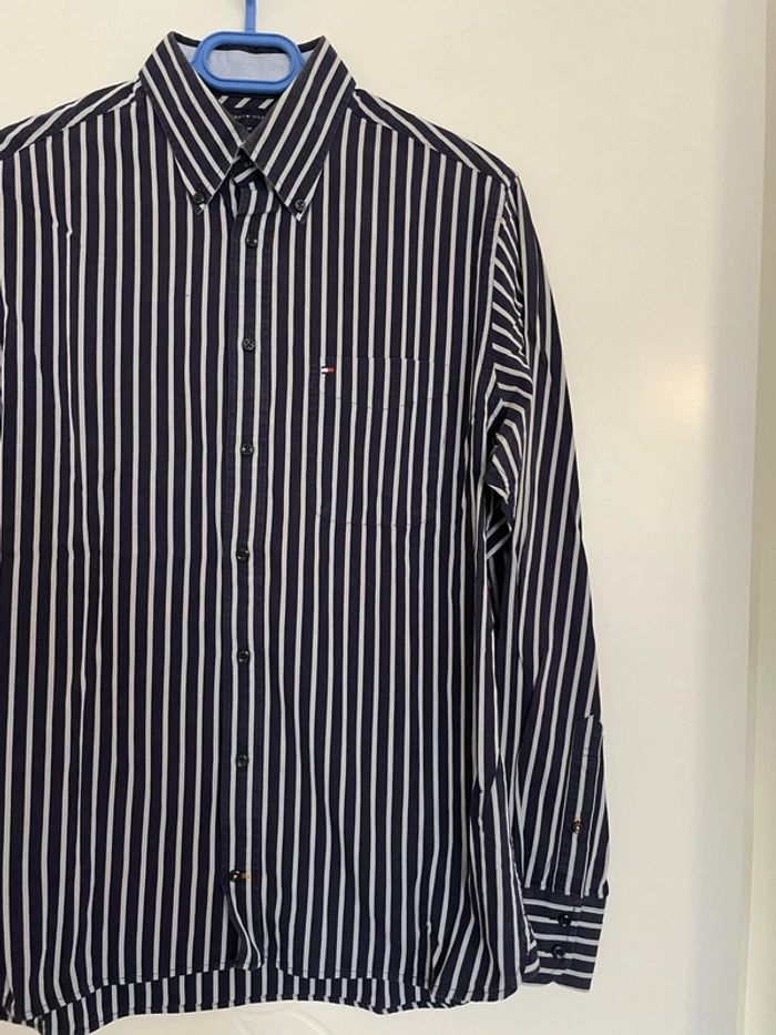 Bonjour je vends une Chemise à manches longues bleu marine à rayure gris Tommy Hilfiger taille M Elle est en excellent état porté que 2 fois #tiatia_homme_taillem