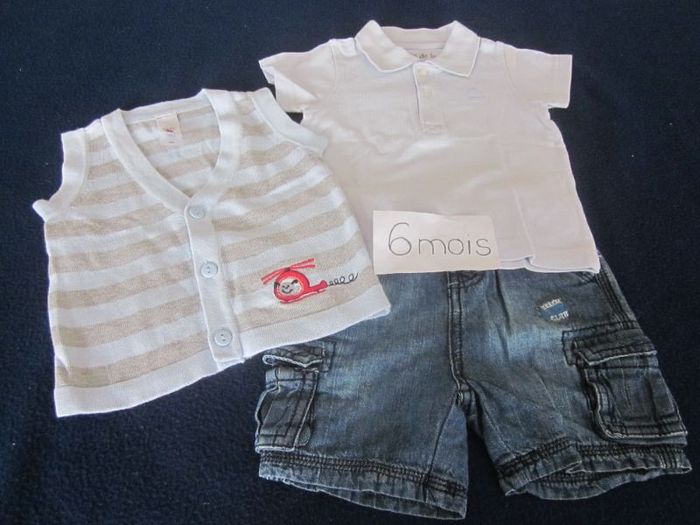 6m, short + polo mc+ gilet sans manche, grain de blé, cadet rousselle