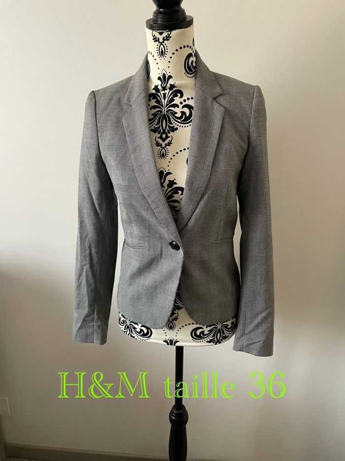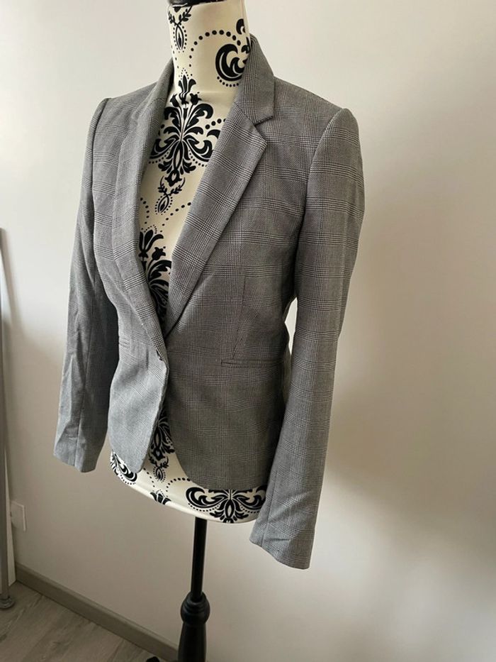 Veste blazer manches longues noir à carreaux blanc H&M taille 36
