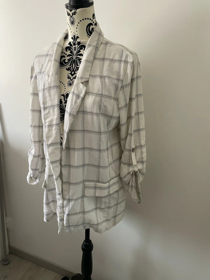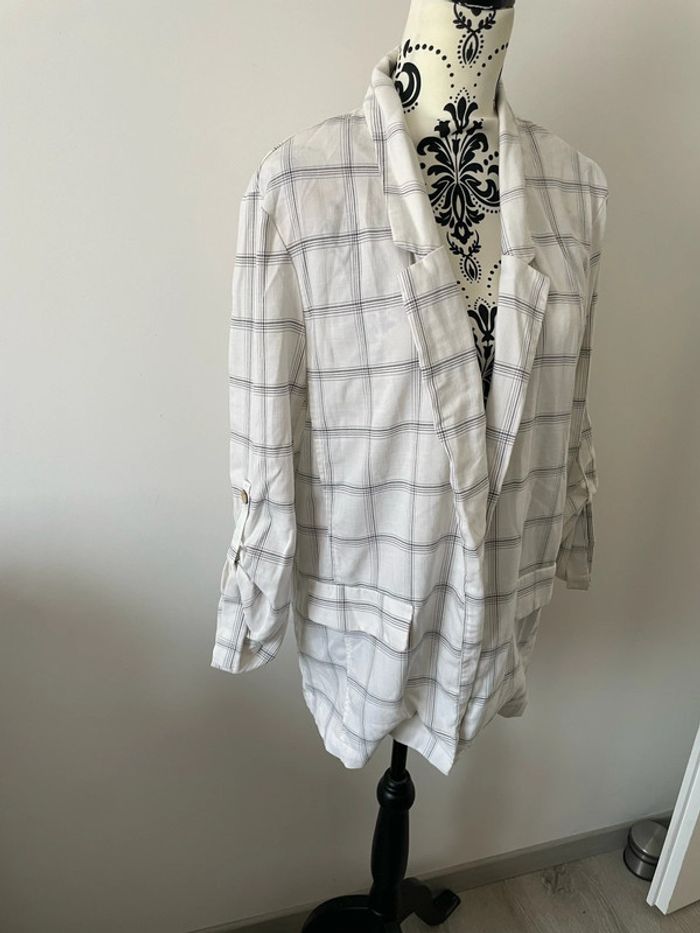 Bonjour je vends ma Veste blazer oversize à manches longues modulable 3/4 blanc à carreaux noir Pimkie taille M Elle est en très bon état très peu porté #tiatia_femme_taille38