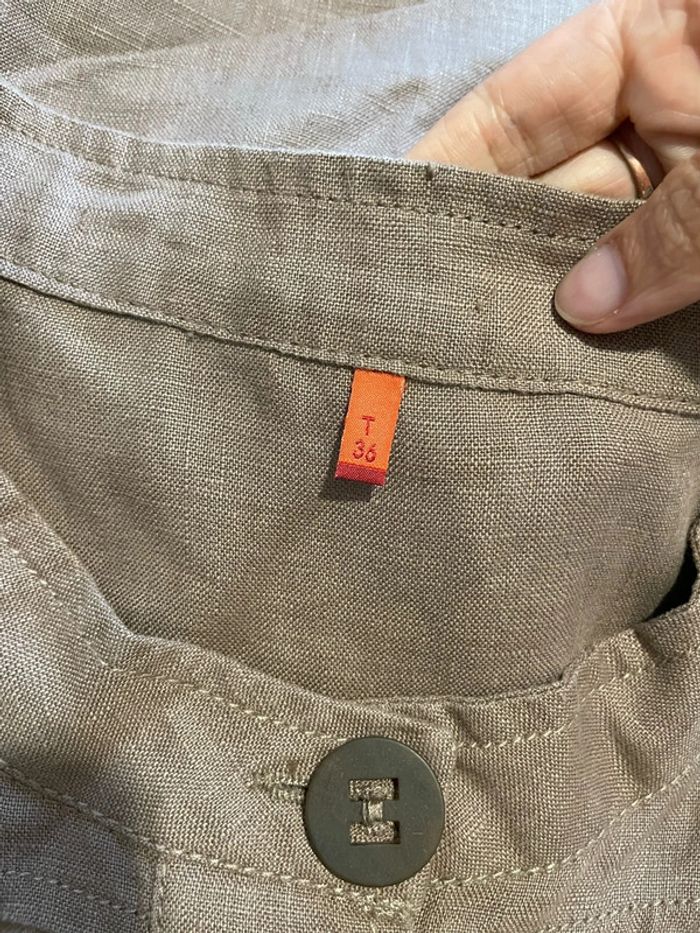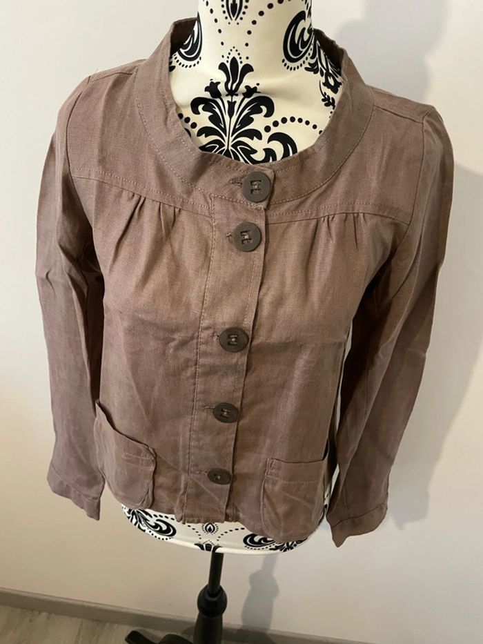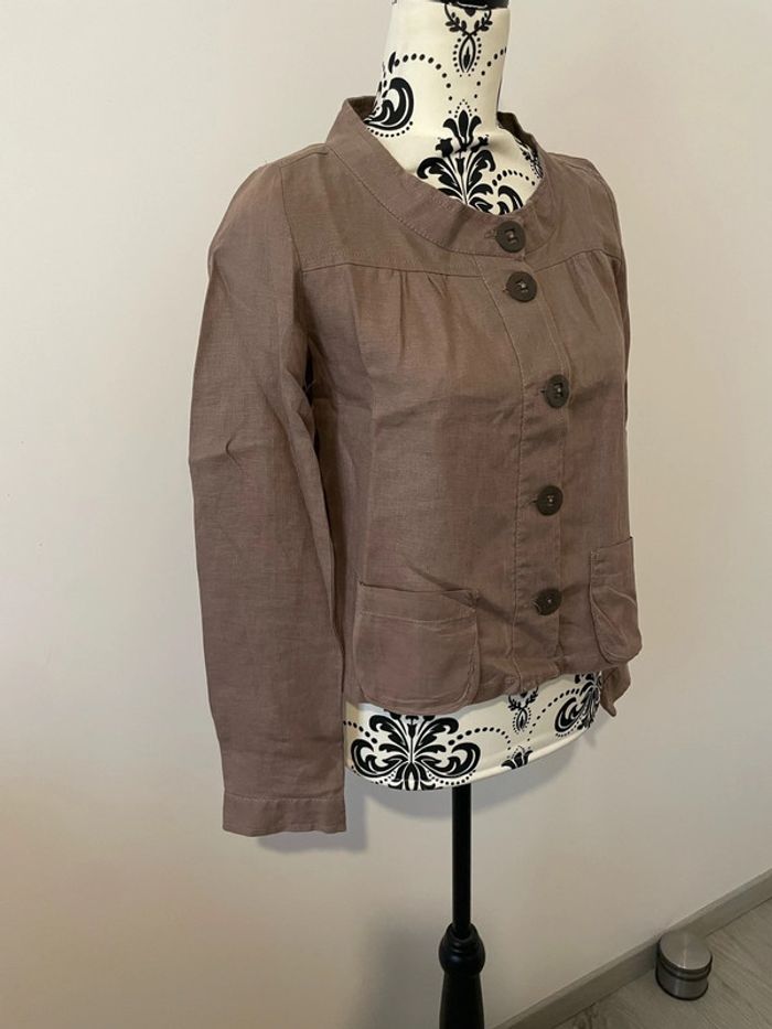 Veste blazer à manches longues en lin beige foncé taupe bouton devant Miss Captain taille 36 - photo numéro 6