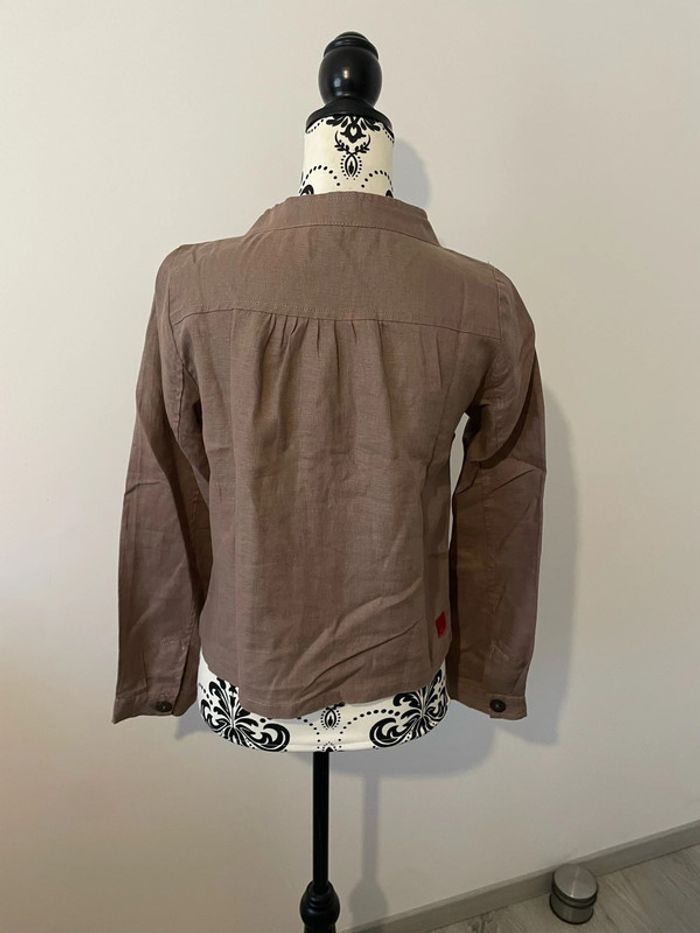 Veste blazer à manches longues en lin beige foncé taupe bouton devant Miss Captain taille 36 - photo numéro 4