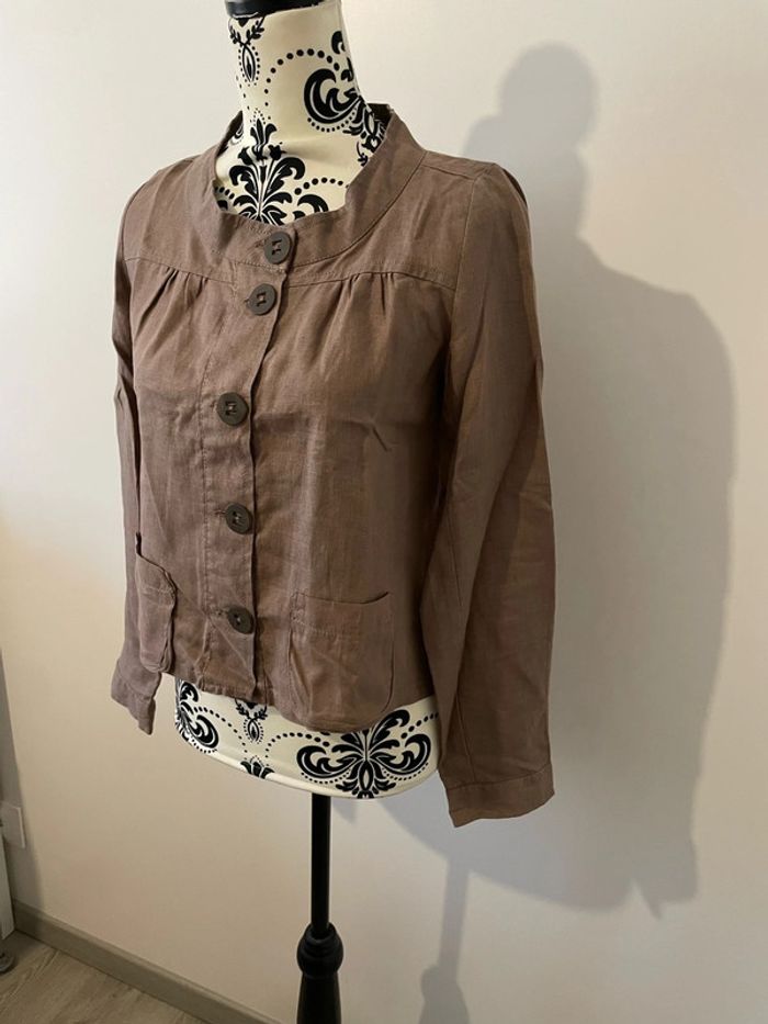 Veste blazer à manches longues en lin beige foncé taupe bouton devant Miss Captain taille 36 - photo numéro 3