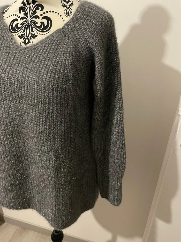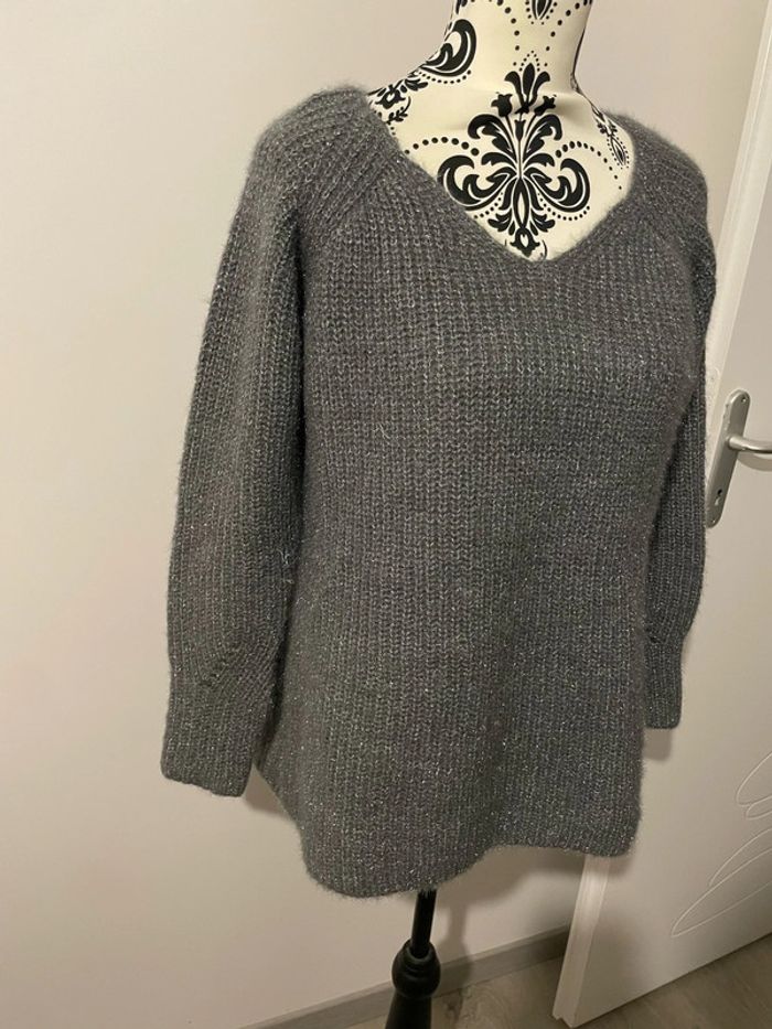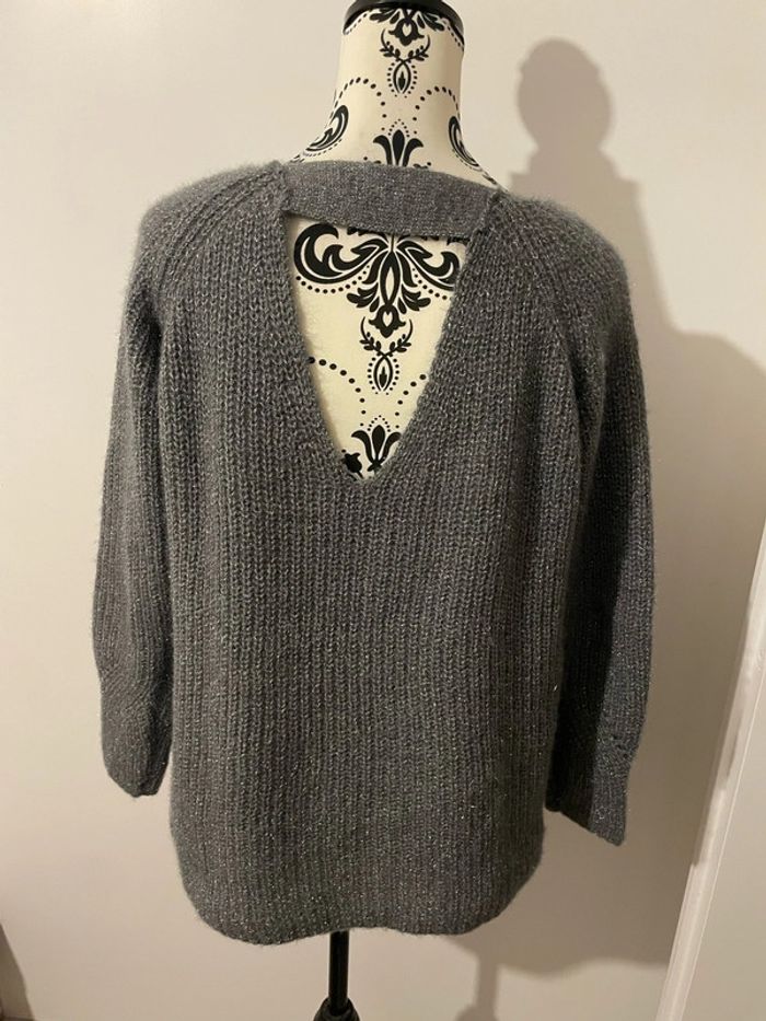 Pull manche longue tout doux gris métallisé oversize dos ouvert lefties taille XS - photo numéro 6