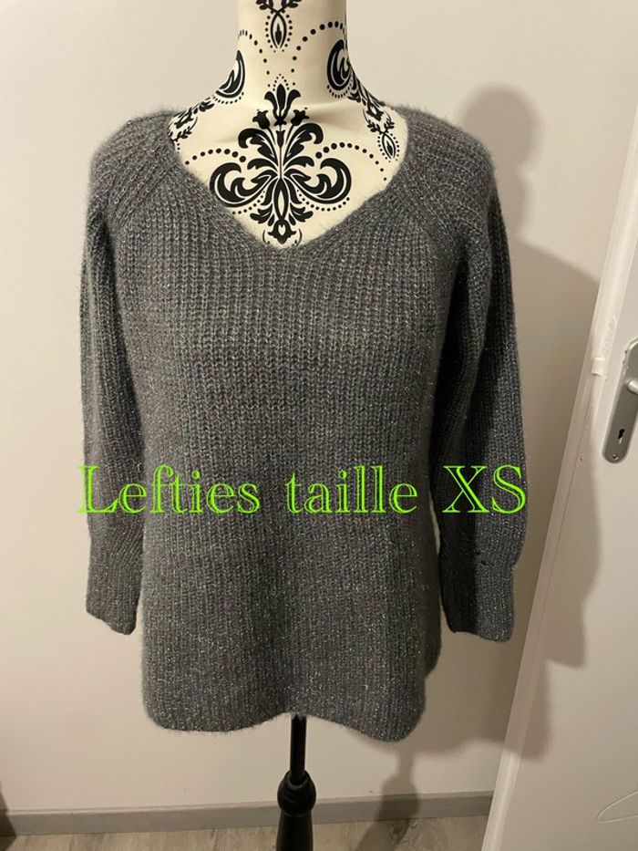 Bonjour je vends mon Pull manche longue tout doux gris métallisé oversize dos ouvert lefties taille XS Il est en excellent état porté 2/3 fois #tiatia_femme_taille34