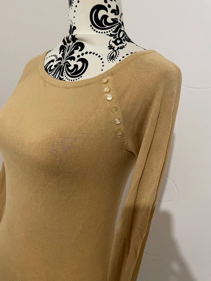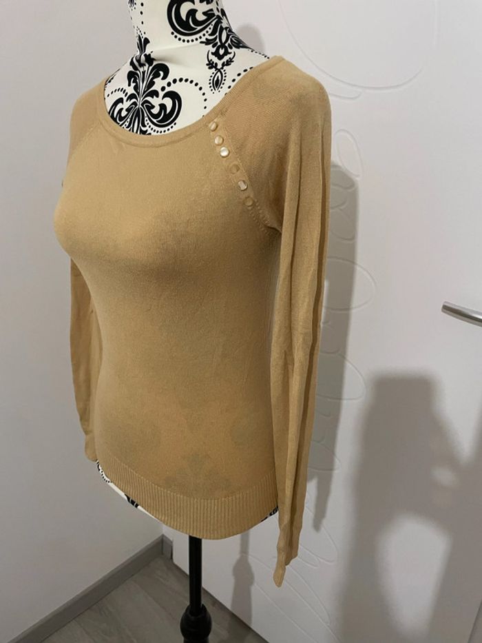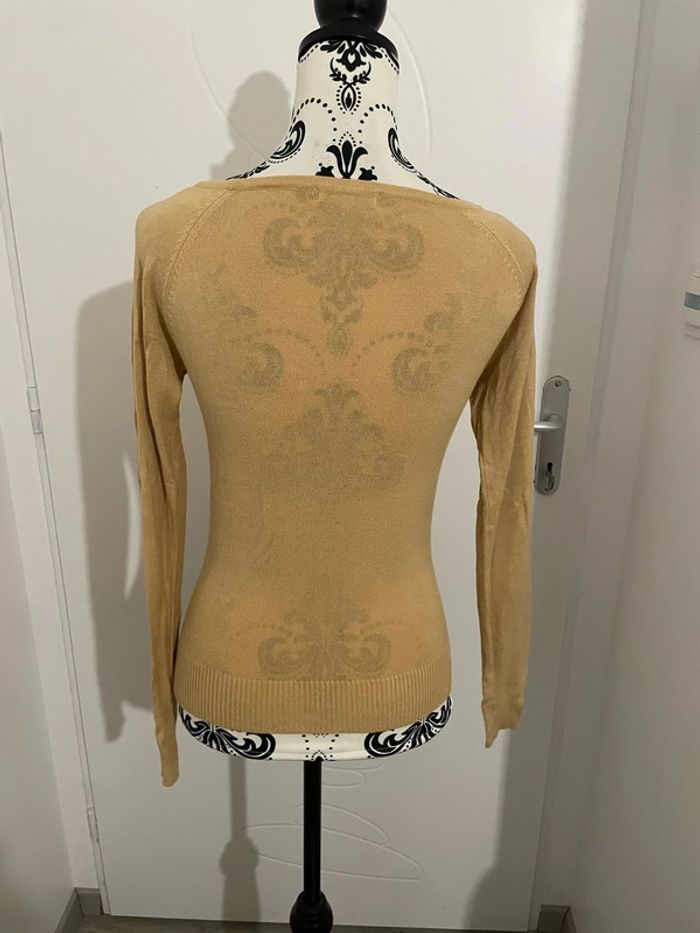 Pull manche longue mi saison extensible moutarde jaune bouton au col Reserved taille S - photo numéro 3