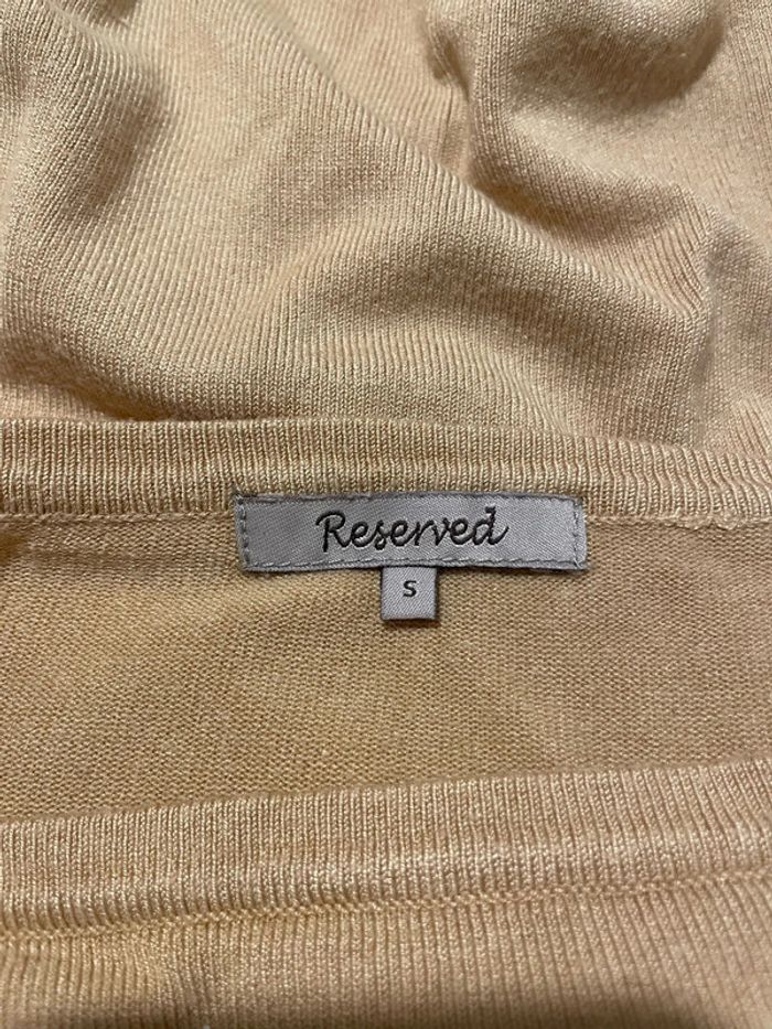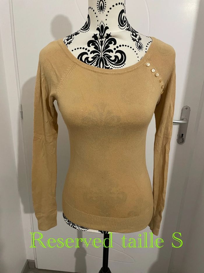 Bonjour je vends un Pull manche longue mi saison extensible moutarde jaune bouton au col Reserved taille S Il est en très bon état très peu porté #tiatia_femme_taille36