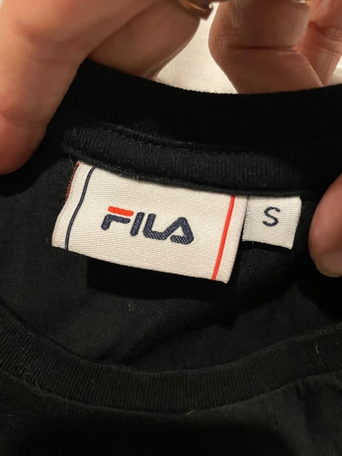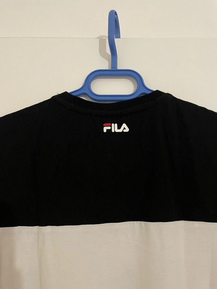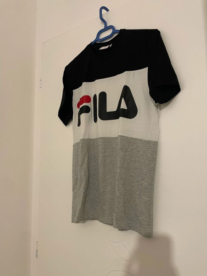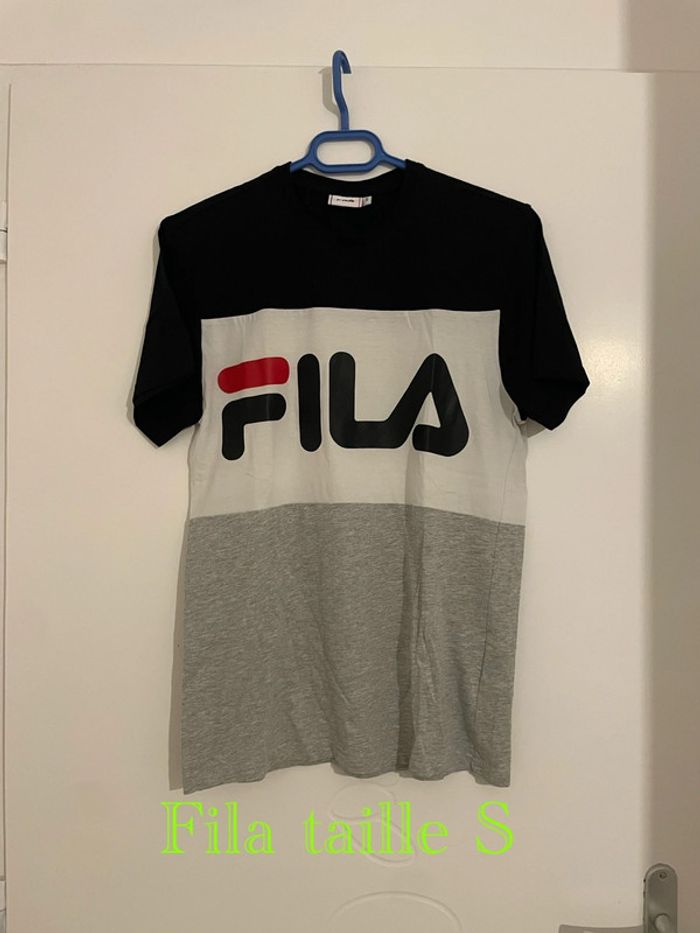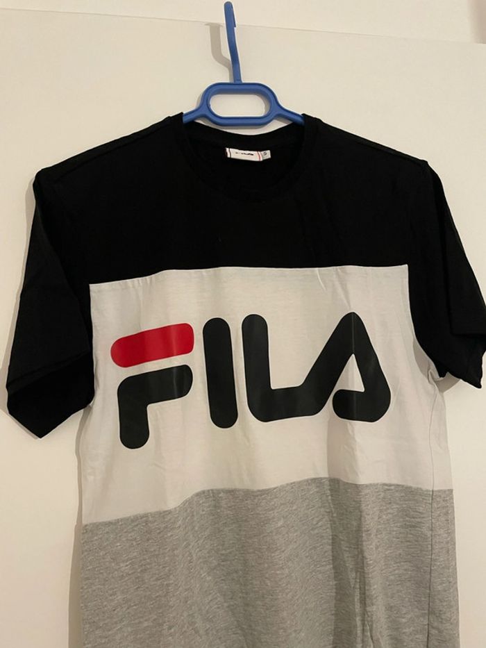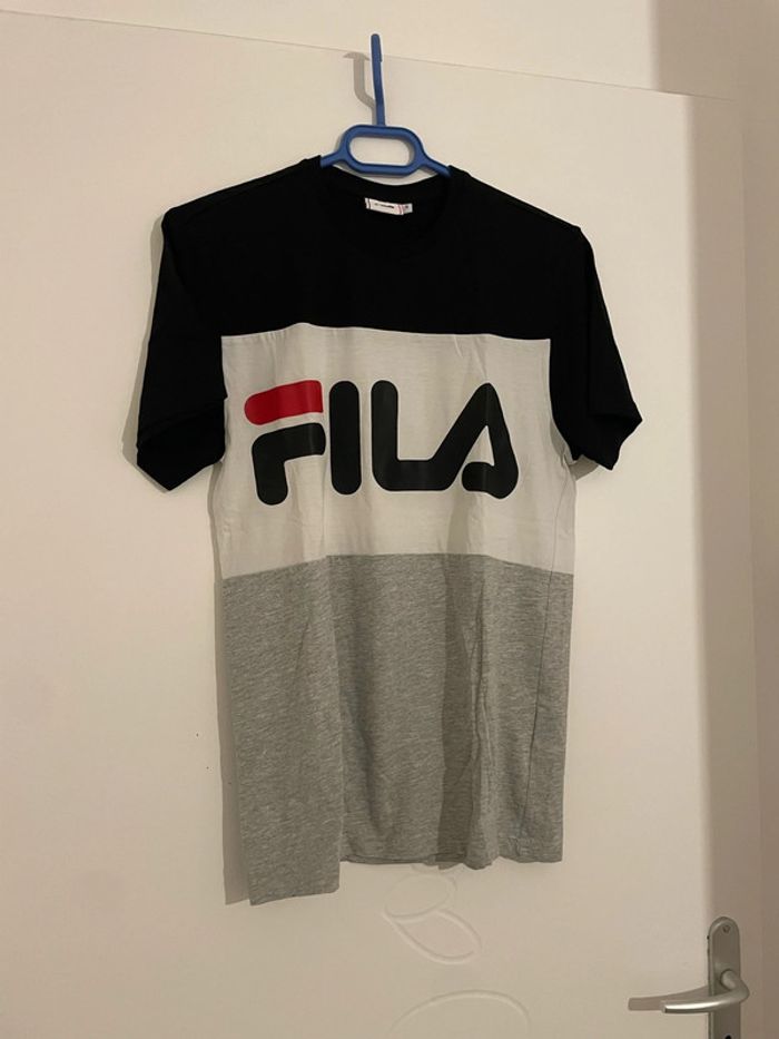 T-shirt à manches courtes noir gris et blanc à rayures Fila taille S