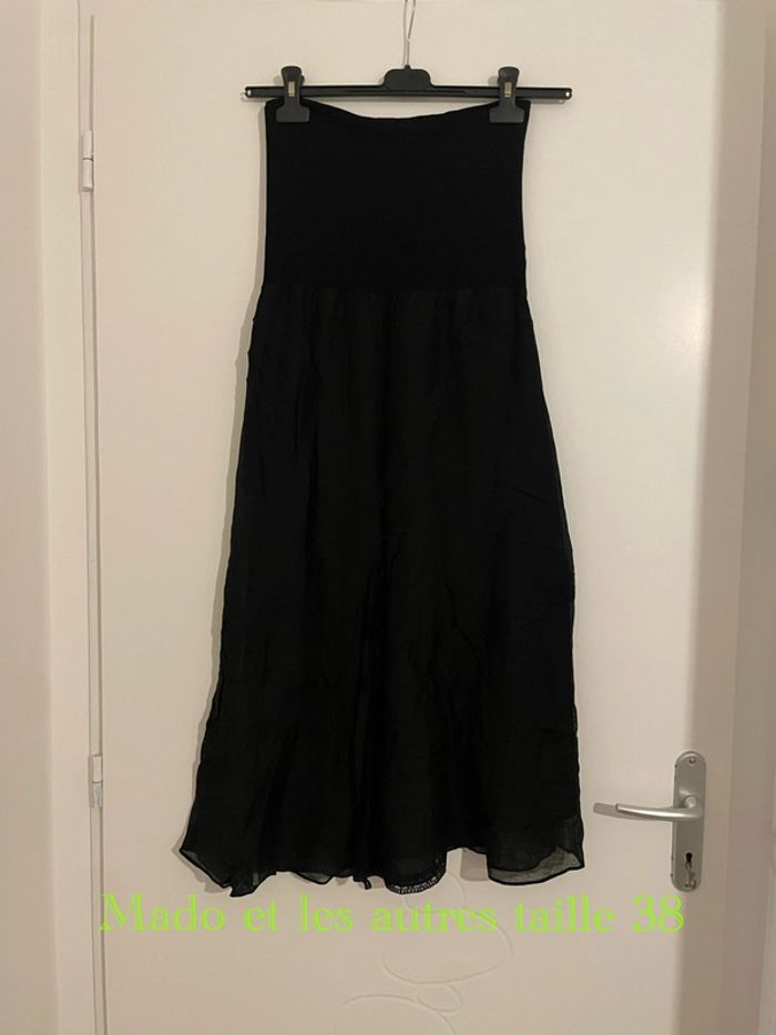 Bonjour je vends une jupe longue noir taille haute élastique à motifs Mado et le autres taille 38 Elles est en excellent état très peu porté #tiatia_femme_taille38