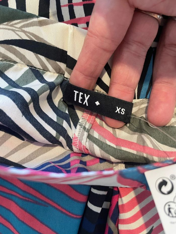 Pantalon léger taille haute élastique motifs feuillage rose kaki multicolore neuf Tex taille XS