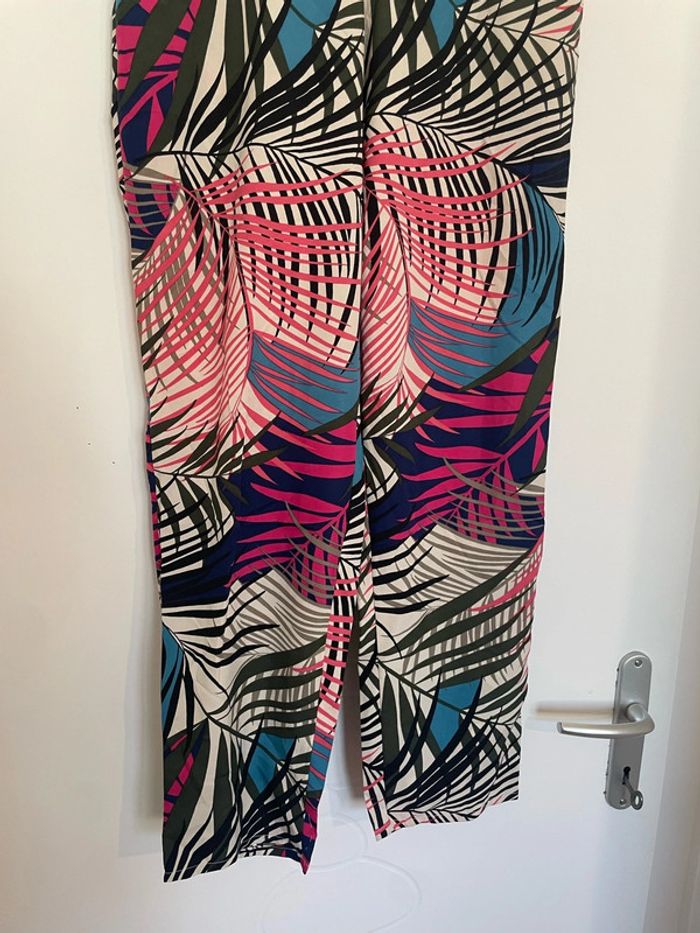 Pantalon léger taille haute élastique motifs feuillage rose kaki multicolore neuf Tex taille XS - photo numéro 5