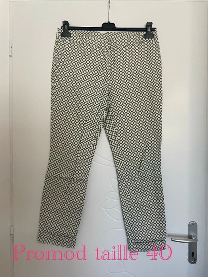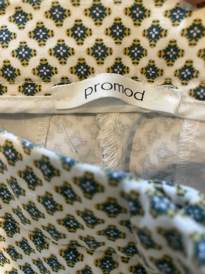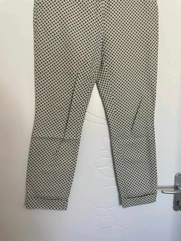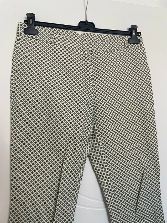 Pantalon court 7/8 habillé taille haute blanc crème à motifs moutarde vert foncé promod taille 40 - photo numéro 7