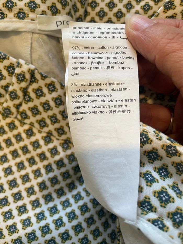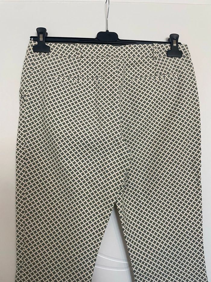Pantalon court 7/8 habillé taille haute blanc crème à motifs moutarde vert foncé promod taille 40 - photo numéro 8