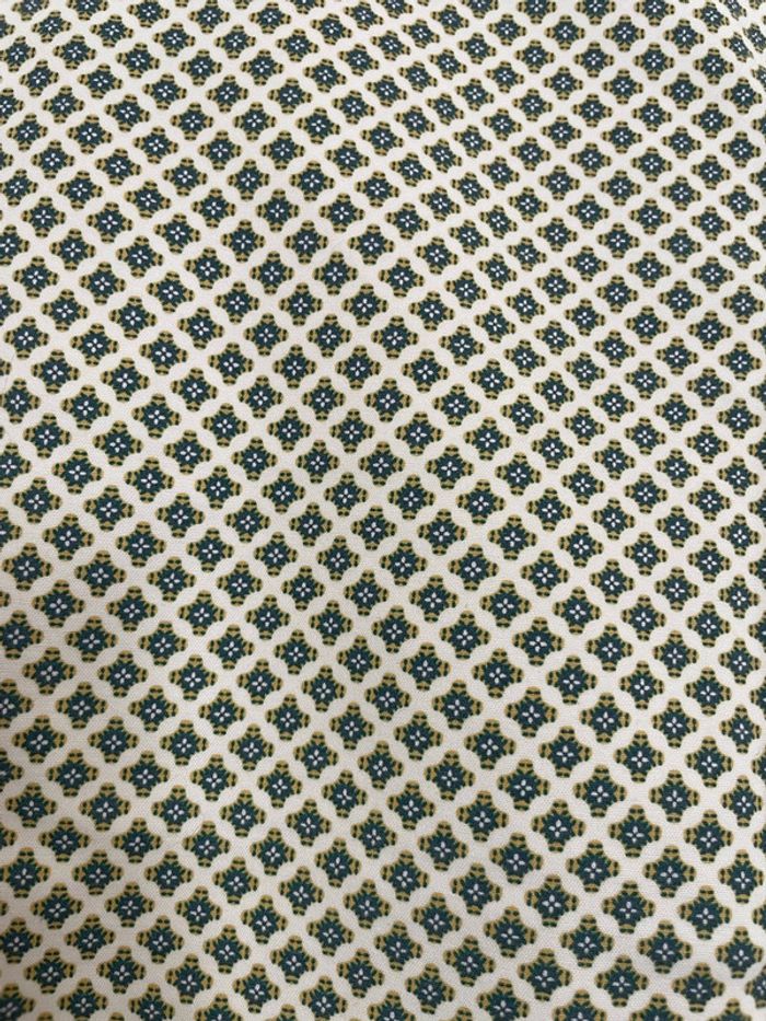 Bonjour je vends mon Pantalon court 7/8 habillé taille haute extensible blanc crème à motifs moutarde vert foncé promod taille 40 Il est en excellent état très peu porté #tiatia_femme_taille40