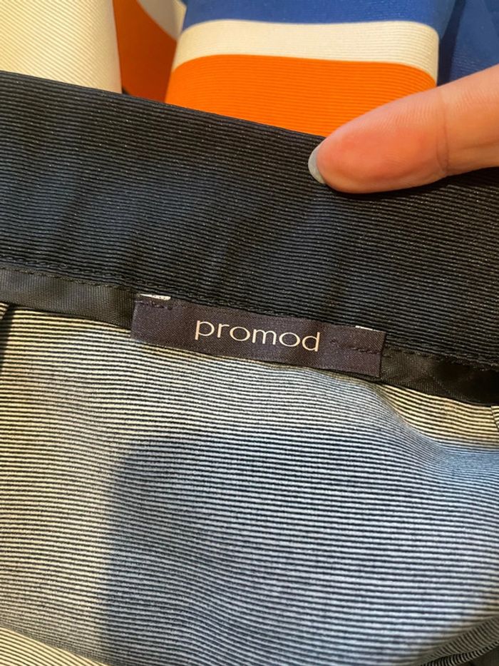 Jupe bas évasé taille haute à rayures blanc bleu marine orange et bleu promod taille 38 - photo numéro 5