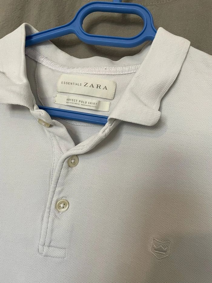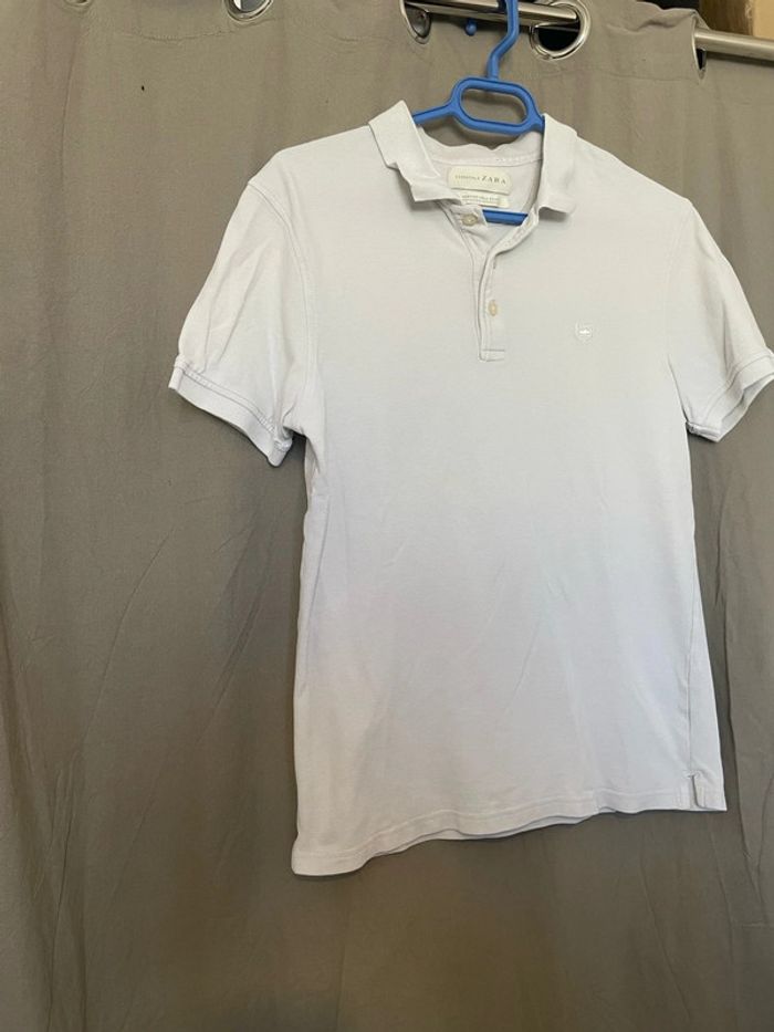 Bonjour je vends un Polo à manches courtes blanc uni Zara taille M Il est en très bon état il a juste une petite tache à l’intérieur du col qui ne se voit pas porté #tiatia_homme_taillem