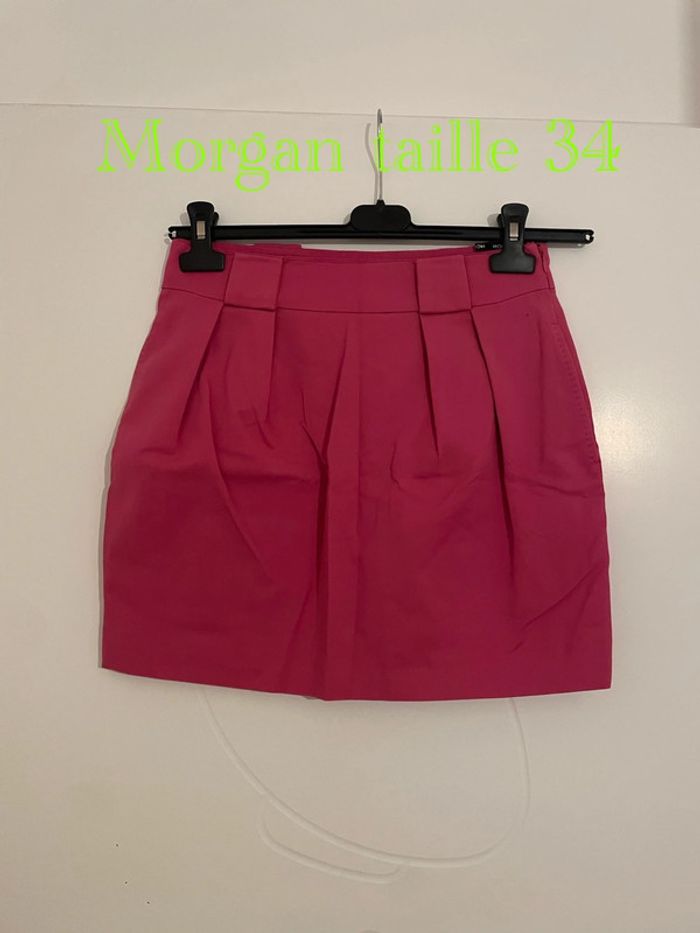 Bonjour je vends ma Jupe courte coupe tulipe rose fermeture éclair coté Morgan taille 34 Elle est en excellent état très peu porté #tiatia_femme_taille34