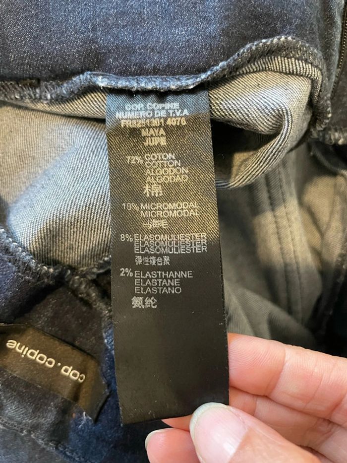Jupe en jean bleu foncé extensible fausse ceinture poche devant Cop. Copine taille 38 - photo numéro 7