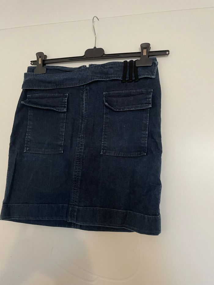 Jupe en jean bleu foncé extensible fausse ceinture poche devant Cop. Copine taille 38 - photo numéro 2