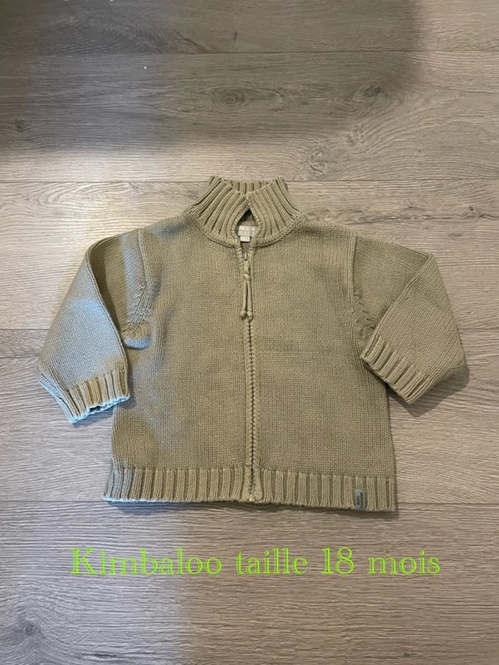 Gilet pull à zip devant kaki en coton Kimbaloo taille 18 mois