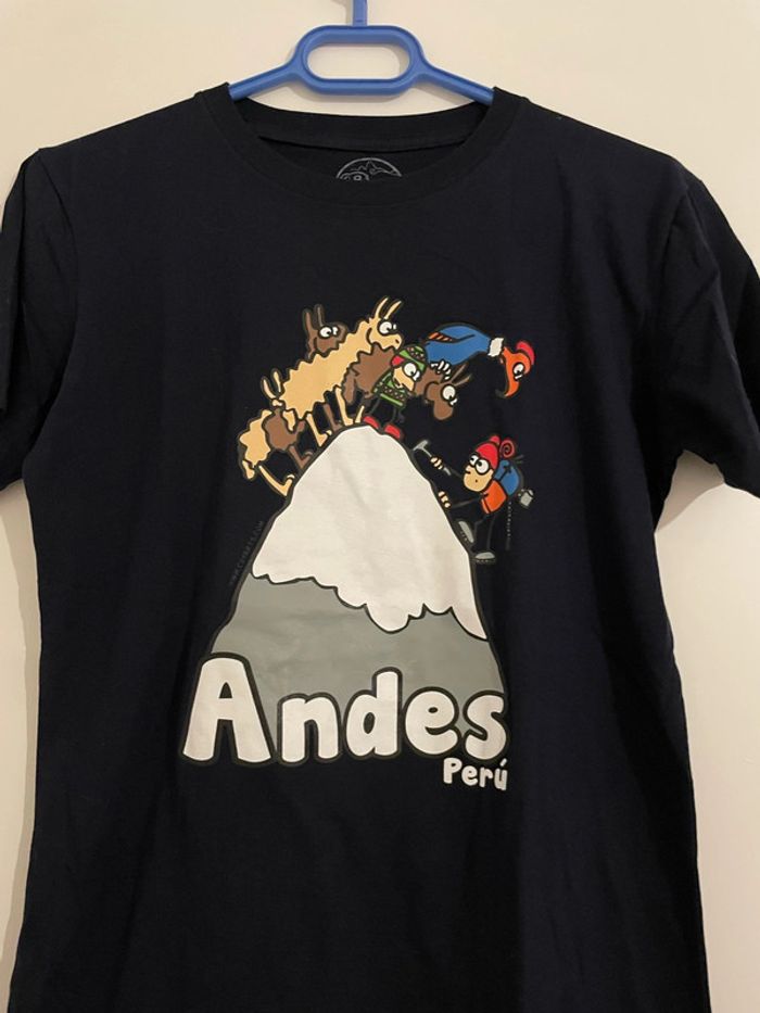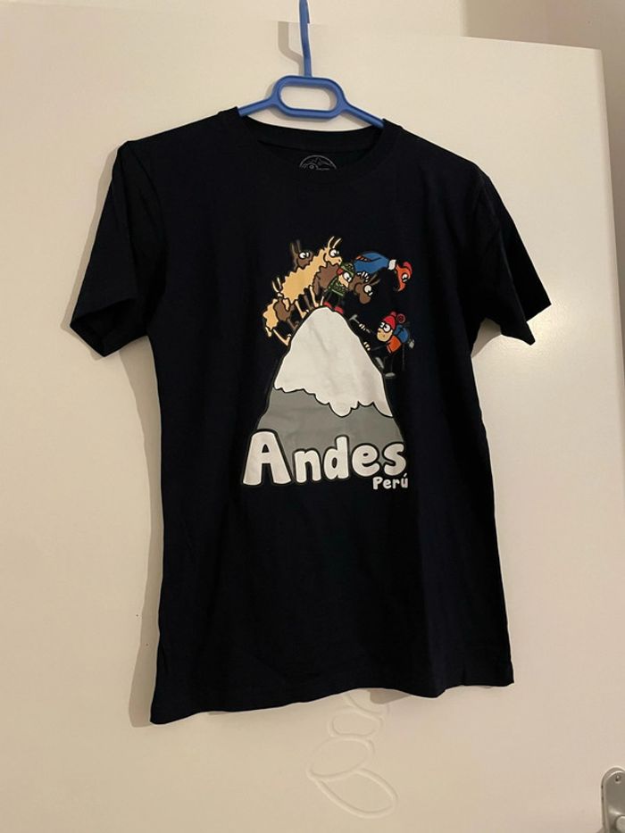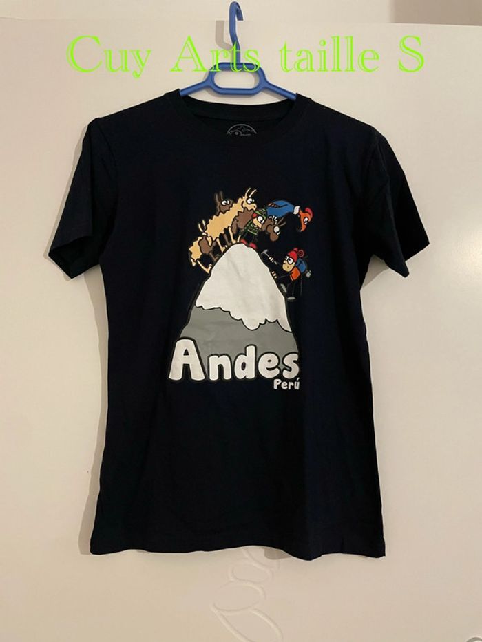 Bonjour je vends un T-shirt à manches courtes bleu marine à motifs humoristique péruvien neuf Cuy Arts taille S Il est neuf jamais porté #tiatia_homme_tailles