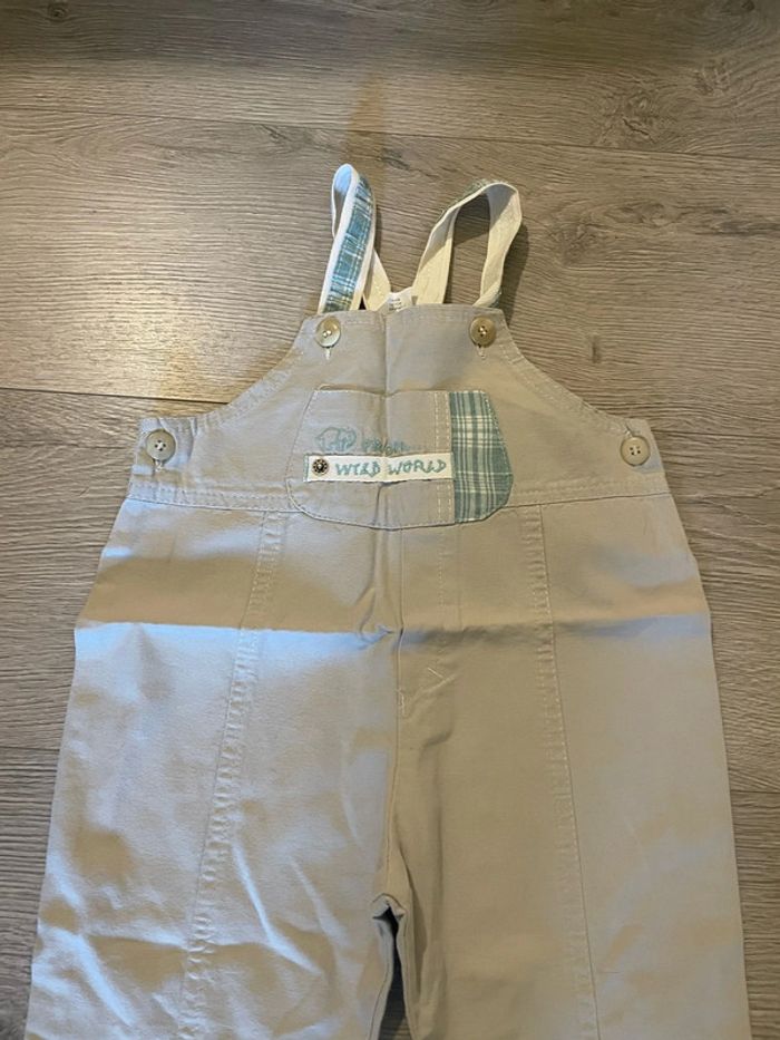 Salopette beige et bleu clair avec motifs devant et bas neuf Wild World taille 18 mois - photo numéro 7