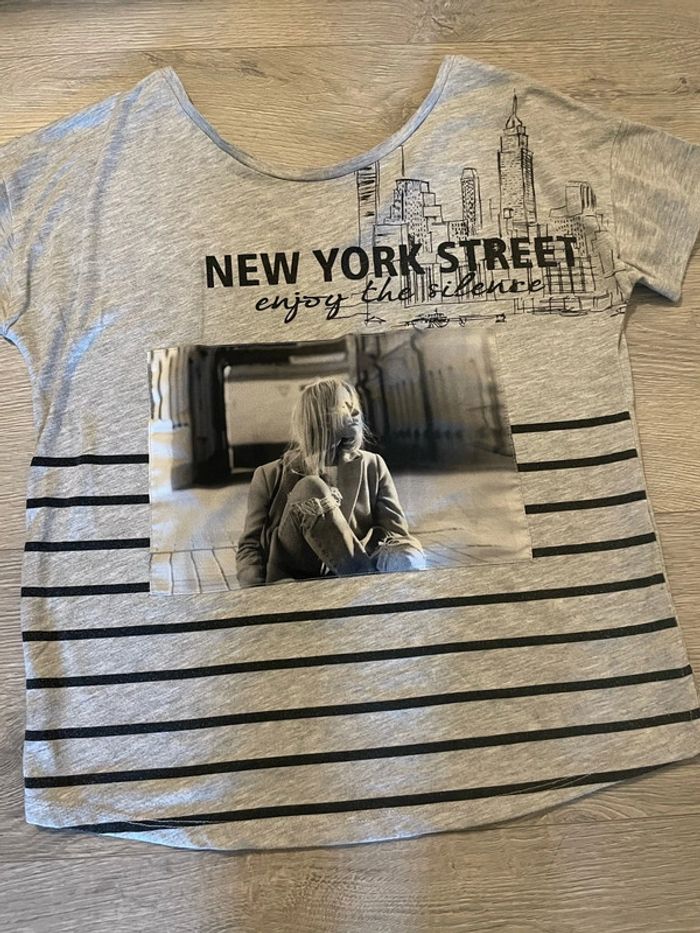 Bonjour je vends un T-shirt oversize à manches courtes gris motifs noir New York kiabi taille 12 ans Il est en excellent état très peu porté #tiatia_fille_taille12ans