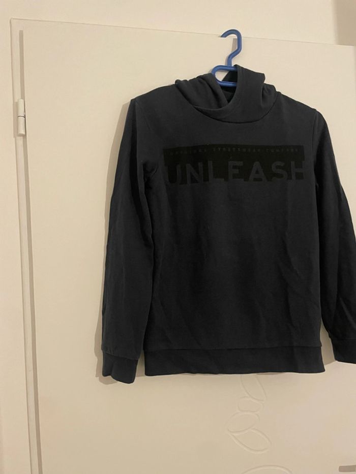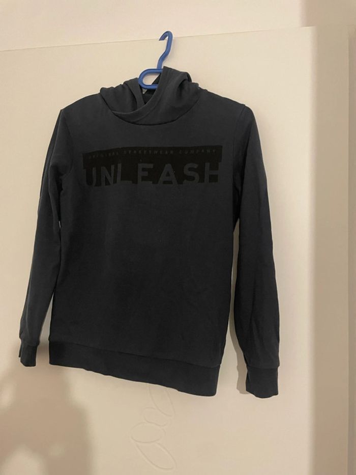 Bonjour je vends un Sweat à manches longues à capuche bleu marine écriture noir kiabi taille 14 ans Il est en très bon état très peu porté #tiatia_garcon_taille14ans