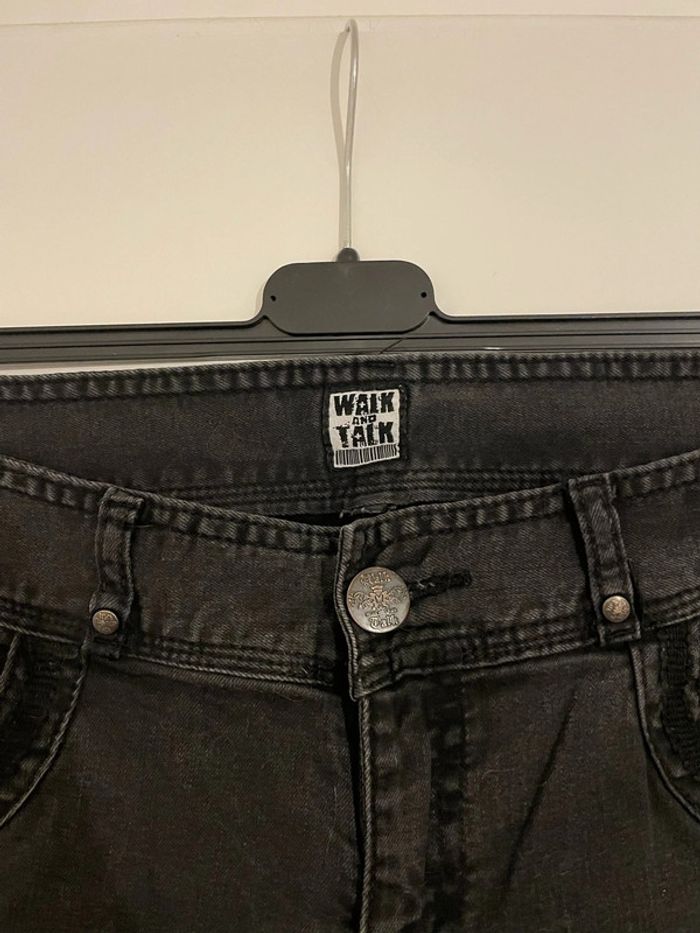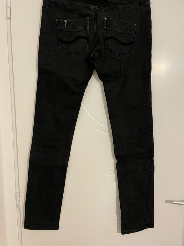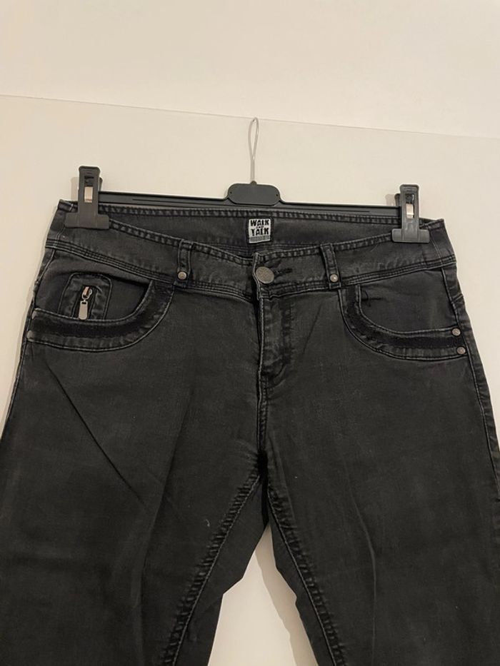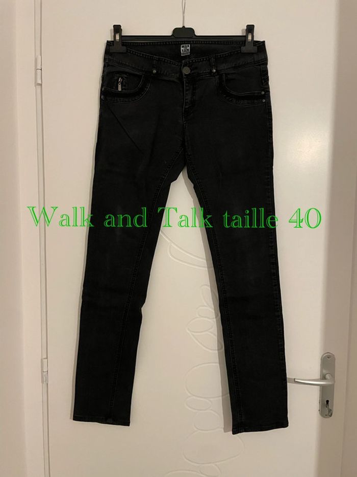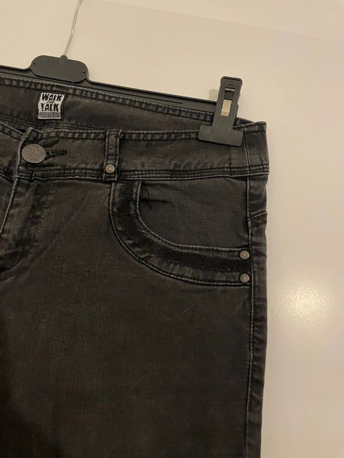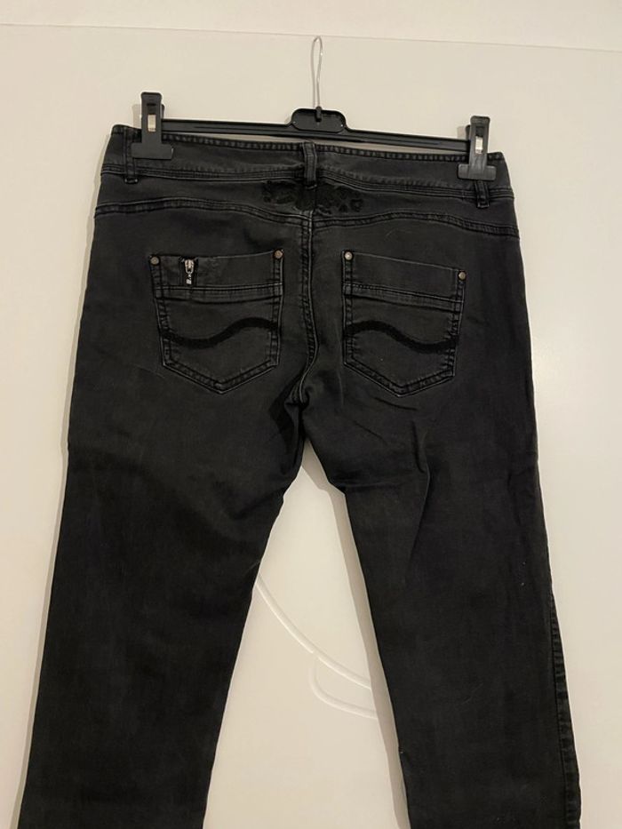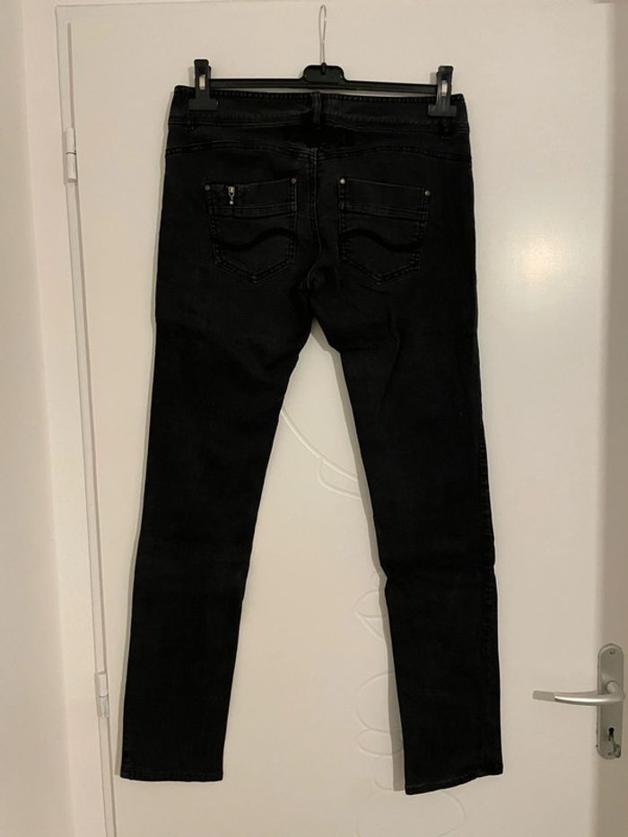 Pantalon jean noir extensible taille basse coupe skinny broderie dos walk and talk taille 40