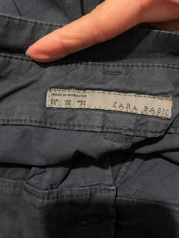 Pantalon court 7/8 chino bleu marine coupe carotte taille haute Zara taille XS - photo numéro 5