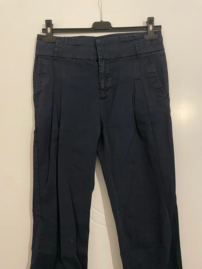 Pantalon court 7/8 chino bleu marine coupe carotte taille haute Zara taille XS - photo numéro 1